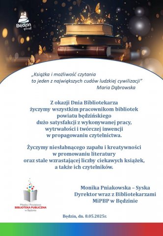 8 MAJ Życzenia z okazji Ogólnopolskiego Dnia Bibliotekarza i Bibliotek Szczęśliwego Dnia Bibliotekarza!