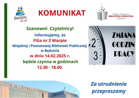 17 LUT Spotkanie Dyrektorów bibliotek samorządowych Powiatu Będzińskiego Podsumowanie działalność jaką w 2024 roku MiPBP w Będzinie prowadziła, w ramach merytorycznego wsparcia 7 bibliotek w powiecie.