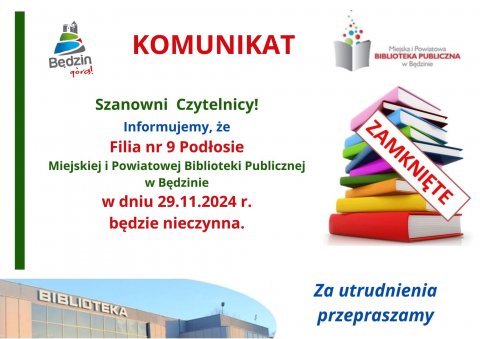 25 LIST Komunikat dot. pracy Filii nr 1 - Ksawera, nr 2 - Warpie oraz nr 3 - Dworzec MiPBP w Będzinie Zapraszamy!