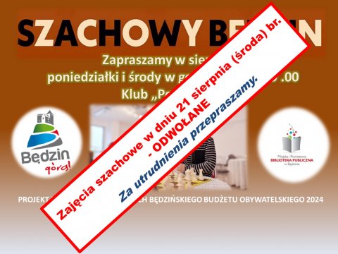 20 SIER Środowe zajęcia szachowe - odwołane! Zapraszamy na kolejne zajęcia już w poniedziałek - 26 sierpnia br.