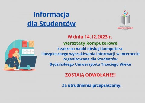 13 GRU Komunikat dot. pracy Filii nr 1 - Ksawera oraz oraz Filii nr 5 - Grodziec Za utrudnienia przepraszamy.
