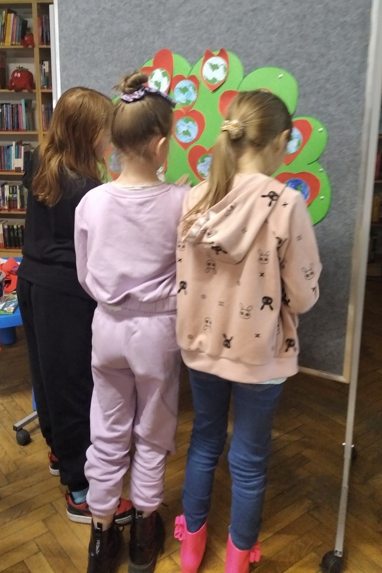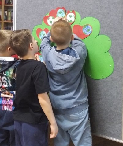 Opowiadanie Magdaleny Kiełbowicz "Ekolog domowy", które znajduje się w książce pt. "Czarodziejskie słowa: wartościowe teksty dla dzieci" uświadomiło drugoklasistom, że aby być ekologiem wcale nie trzeba być dorosłym i podejmować dużych przedsięwzięć. Wystarczy, aby każdy z nas, nawet najmłodsi, stosowali w codziennym życiu do właściwych zasad. Trzeba oszczędzać wodę i prąd, sortować śmieci, a także chronić rośliny i zwierzęta. Aby okazać szacunek do planety dzieci wykonały serduszka, którymi przyozdobiły zielone, wiosenne drzewko. Zabrały je ze sobą do szkolnej klasy, by przypominało o eko zasadach i spotkaniu w bibliotece.