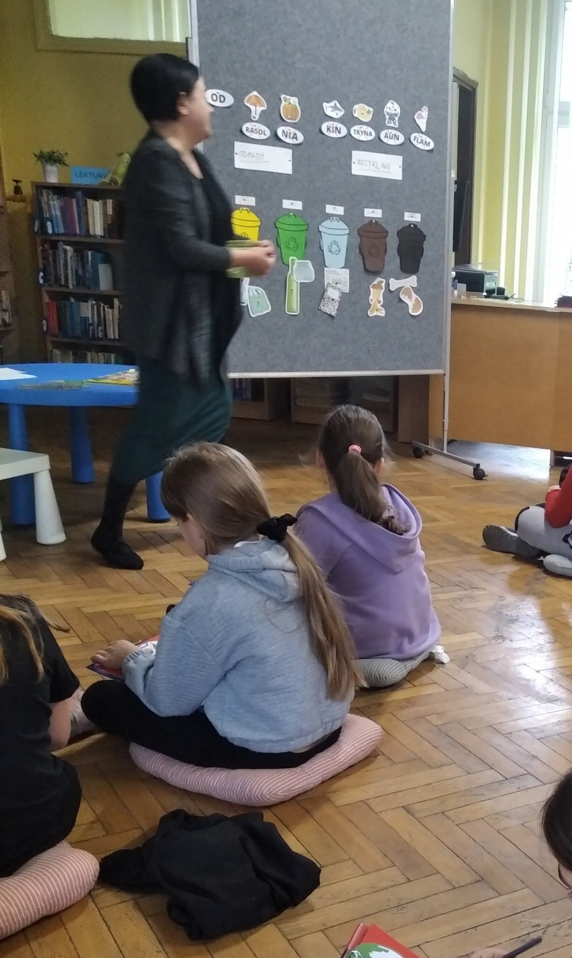 Uczniowie klasy II a Szkoła Podstawowa nr 4 im. Stanisława Staszica w Będzinie odwiedzili 17 kwietnia Filię nr 1 Ksawera naszej biblioteki, aby wspólnie poruszyć tematy recyklingu, sortowania odpadów i oszczędzania surowców. "Poradnik młodego ekologa" napisany przez Agnieszkę Nożyńską - Demianiuk okazał się doskonałym źródłem wiedzy. Każde zagadnienie jest w nim przedstawione poprzez rymowany wiersz i wzbogacone o "regulamin ekoludka" oraz "notesik ekologa" Zawarte w nich rady i informacje pomagają zrozumieć daną kwestię i wskazują właściwe rozwiązania, które należy zastosować.