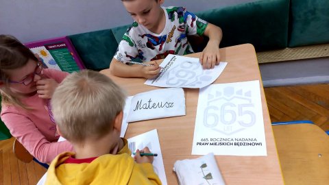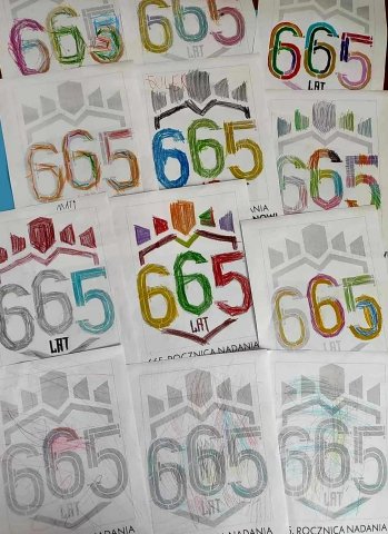 Ten naturalny proces wietrzenia i wypłukiwania się skał w legendzie przedstawiony został, jako diabelskie pazury. Dzieciom wystarczyło przypomnieć co się dzieje z wodą, gdy zamarza i potrafii przy tym wywołać pękniecia plyt chodnikowych. Takie nawiązanie do tematu, który dzieci znają pomogło im łatwiej zrozumieć otaczający świat. Na koniec spotkania, zeby przypomnieć, jak w tym roku wygląda logo naszego miasta przedszkolaki dowolną techniką pokolorowały przygotowany znak graficzny - 665 lat Będzina.
