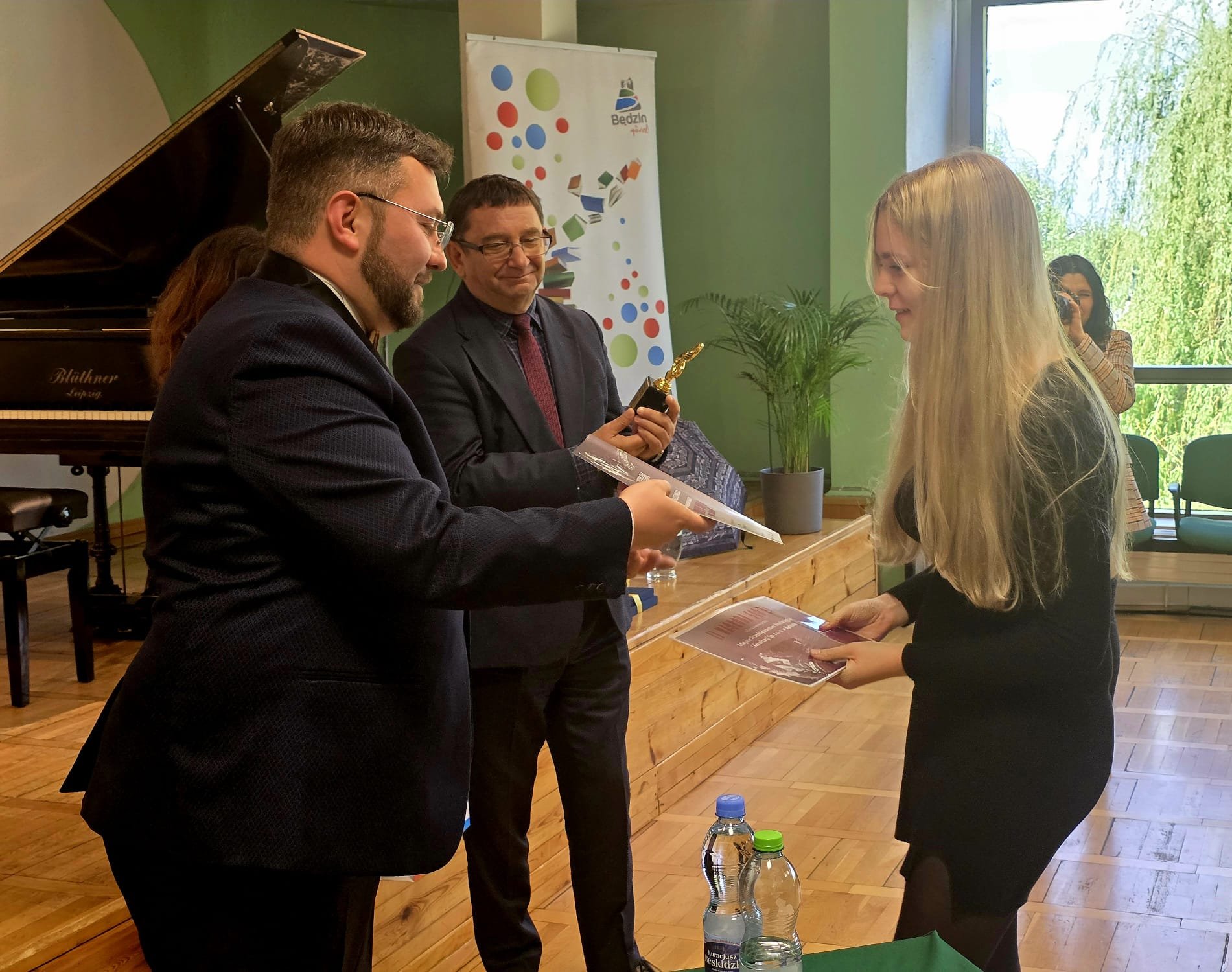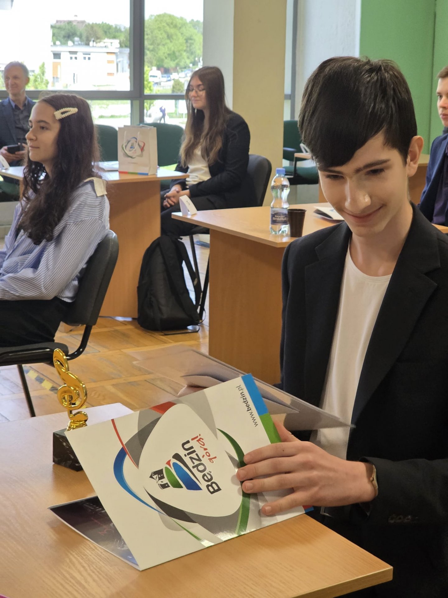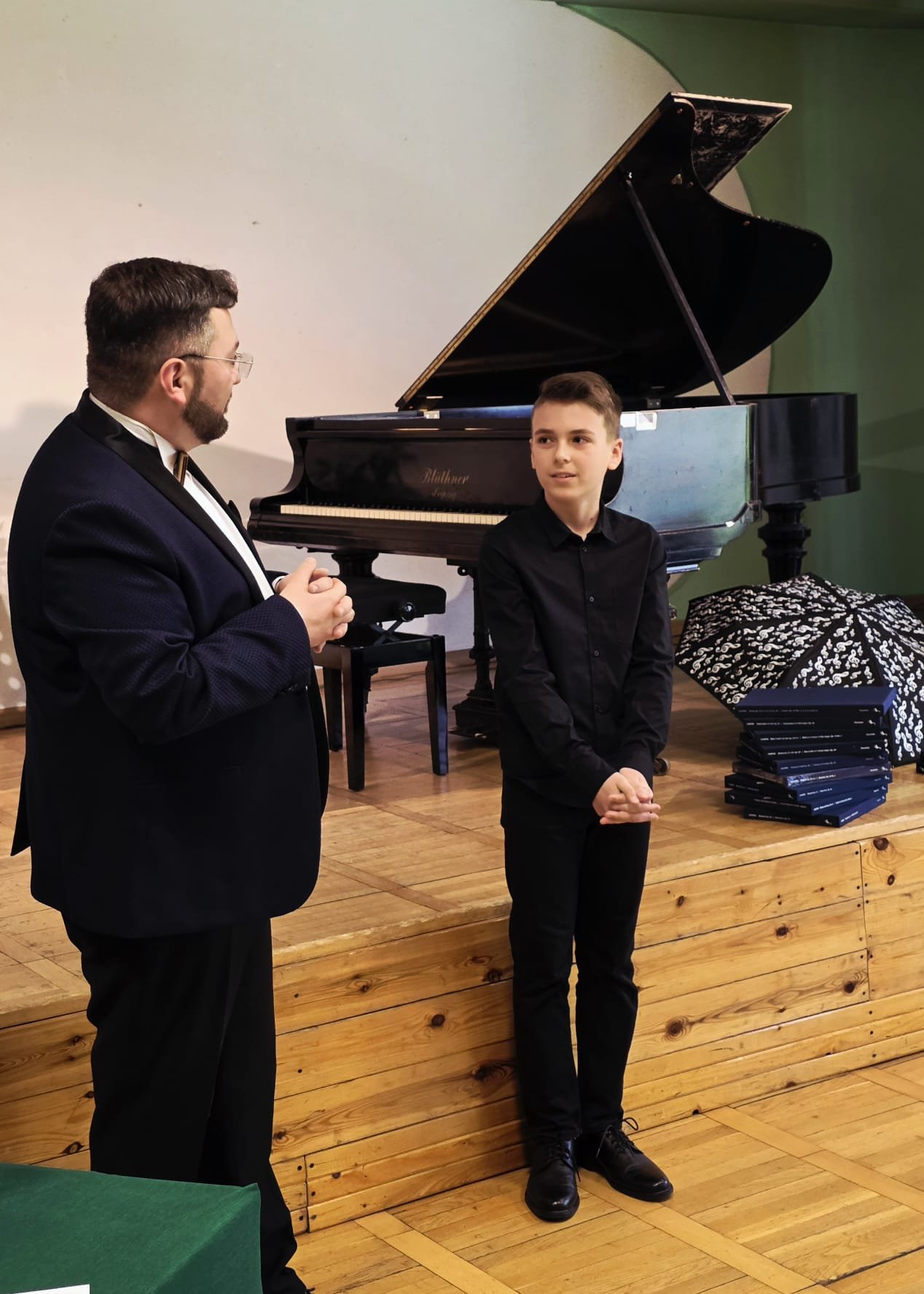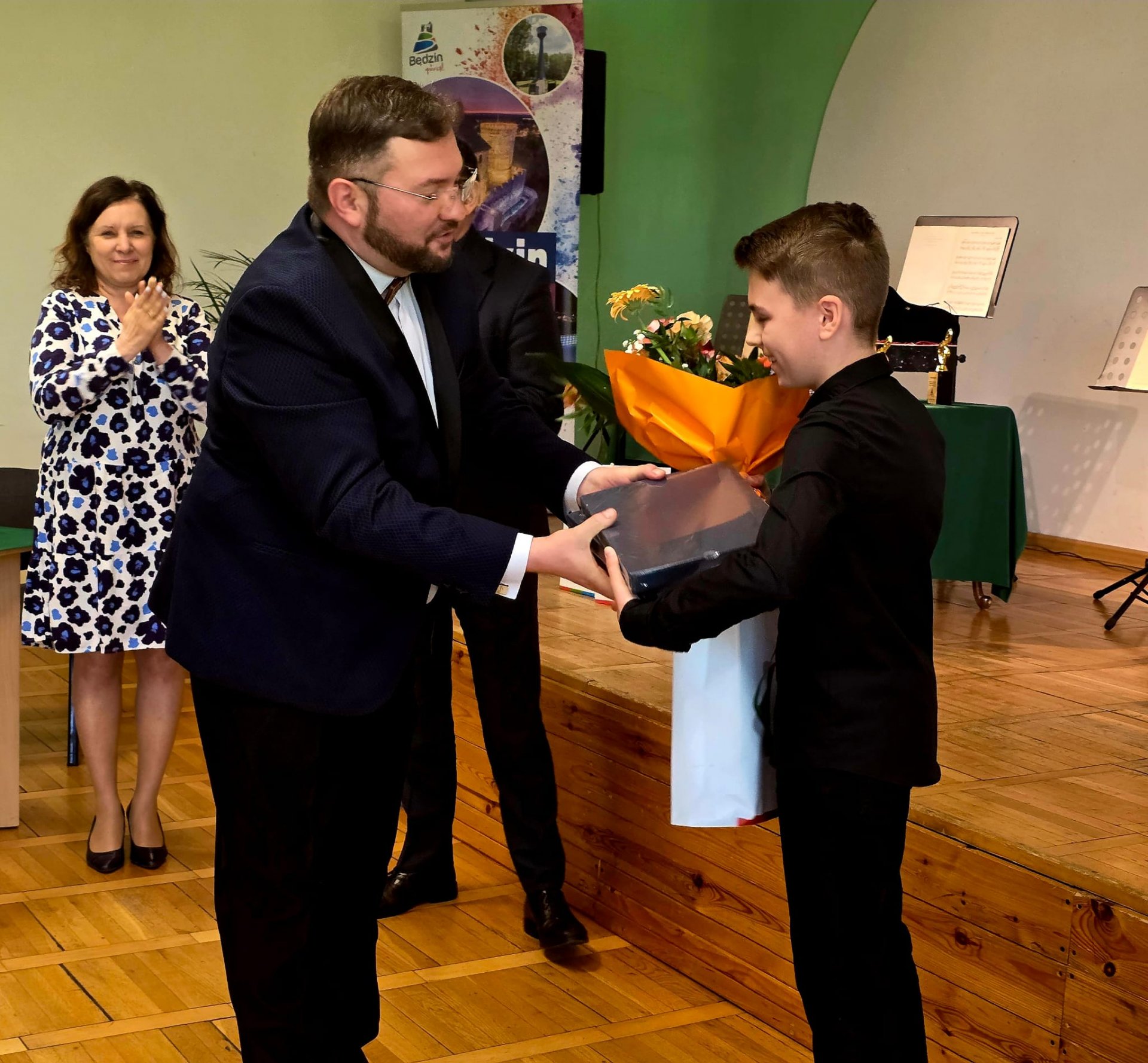 Zanim jednak rozdano nagrody przed uczestnikami konkursu wystąpił młody, doskonale zapowiadający się pianista Mateusz Dąbek z V klasy będzińskiej szkoły muzycznej, który wykonał przed zgromadzoną publicznością Walc Des – dur oraz Fantazję-Impromptu cis-moll op. 66. - posłuchajcie sami. Przed Mateuszem maluje się prawdziwa pianistyczna kariera – w swoim dorobku ma liczne nagrody. Zajął I miejsce w swojej grupie oraz otrzymał GRAND PRIX w VII Międzynarodowym Podkarpackim Konkursie Chopinowskim w Rzeszowie. Na zaproszenie Instytutu Fryderyka Chopina w Warszawie Mateusz Dąbek wykona recital w Domu Urodzenia Fryderyka Chopina w Żelazowej Woli. Cieszymy się z sukcesów naszej uzdolnionej młodzieży oraz z faktu zainteresowania sztuką, muzyką a także samą postacią Fryderyka Chopina, który jest naszym dobrem narodowym.