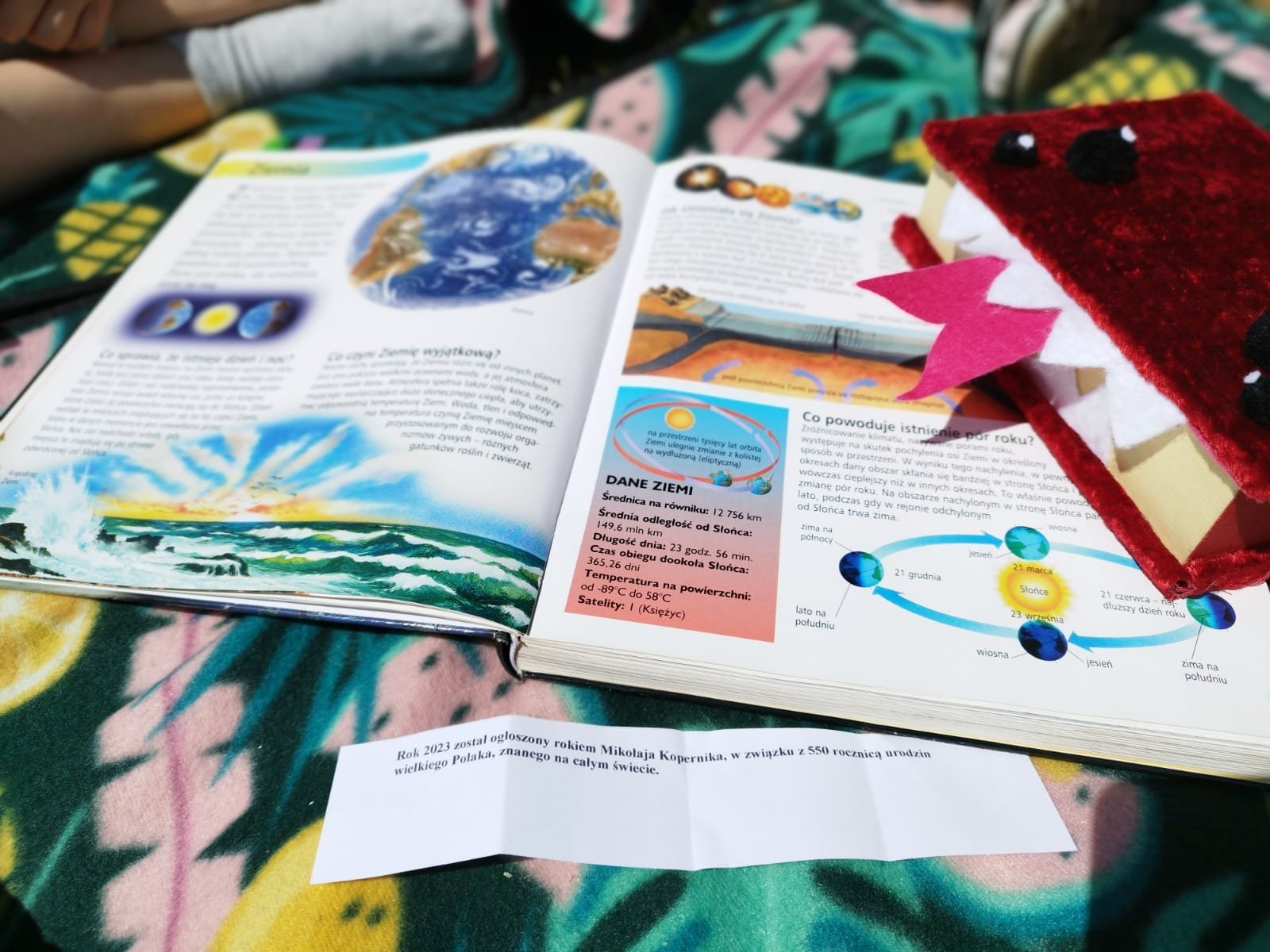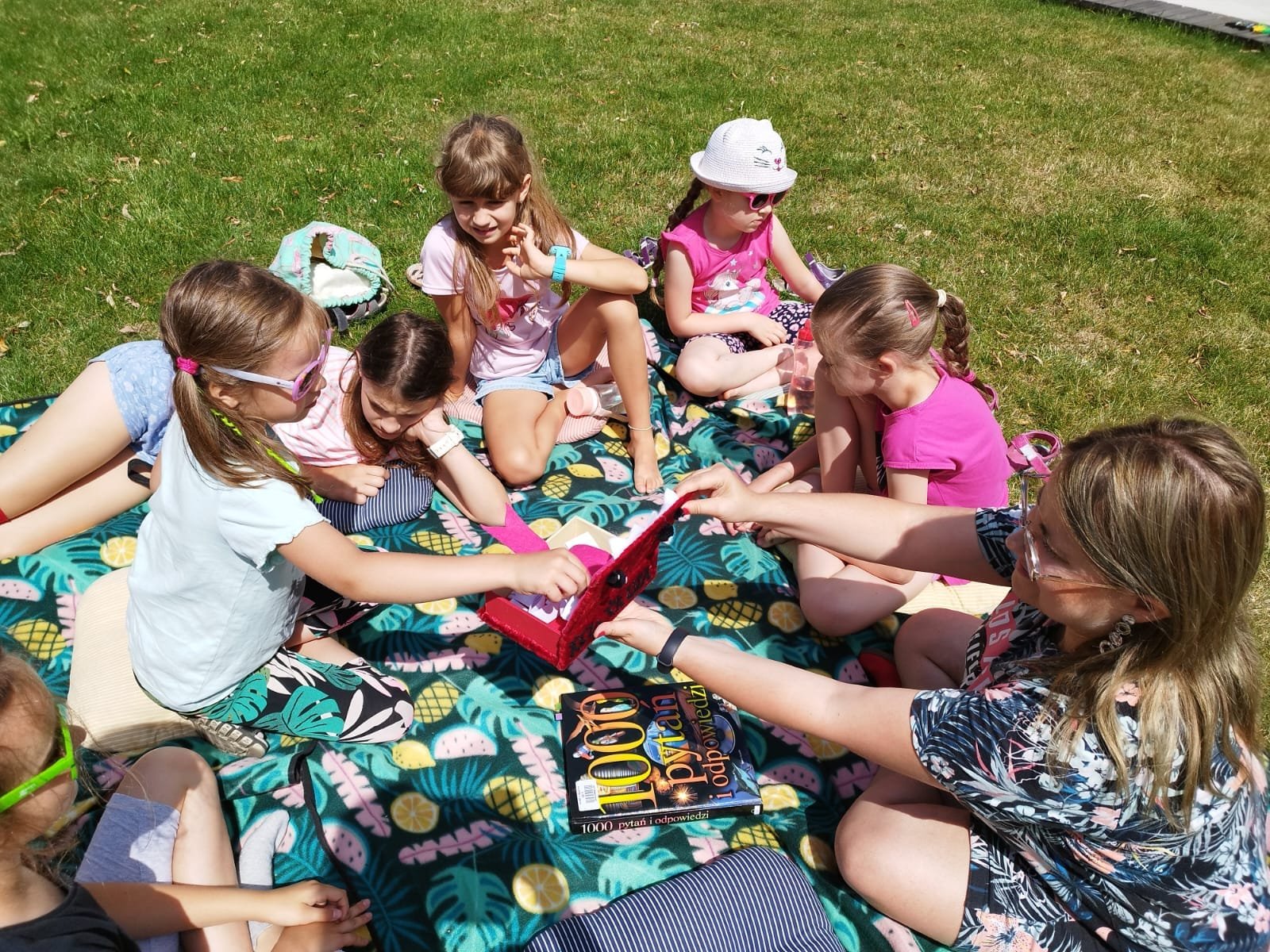 Inspiracją spotkania była książkę "1000 pytań i odpowiedzi", pozycja doskonała zarówno dla dzieci, jak i dla osób dorosłych. Można w niej znaleźć pytania i odpowiedzi na temat kosmosu, dinozaurów, wynalazków, transportu czy zamków. Książka skrywa w sobie całą masę przeróżnych zagadnień wzbogaconych zdjęciami, poukładanych w grupy tematyczne, co znacznie ułatwia korzystanie z niej.