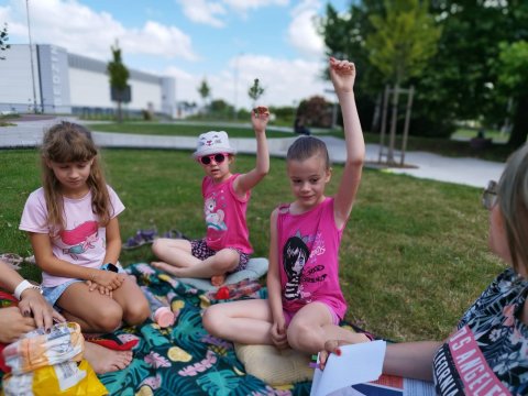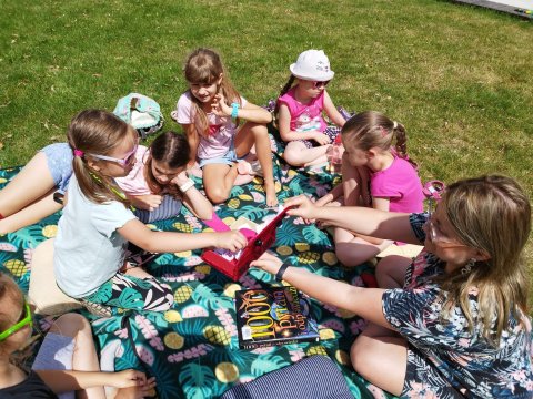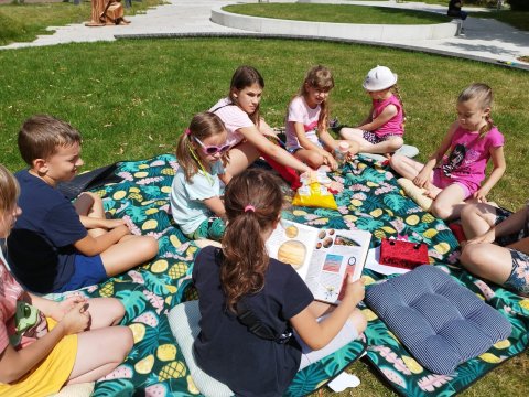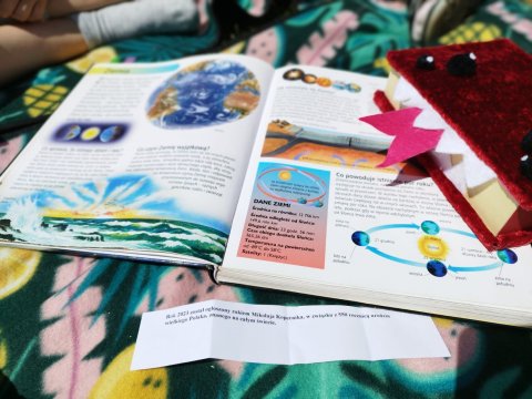 Uczestnicy bibliowakacji zostali zaproszeni do działu „Patrząc w niebo”, by poznać wszystkie planety, rozwiązywać zagadki, które pomagały przybliżać temat układu słonecznego oraz zjawisk atmosferycznych. Dzieci poznały także ciekawostki z życia astronoma – Mikołaja Kopernika. Rok 2023 został ustanowiony bowiem przez Senat RP Rokiem Mikołaja Kopernika. Datę powiązano z wypadającą w tym roku rocznicą pięćset pięćdziesiątych urodzin i czterysta osiemdziesiątą rocznicę śmierci polskiego uczonego.