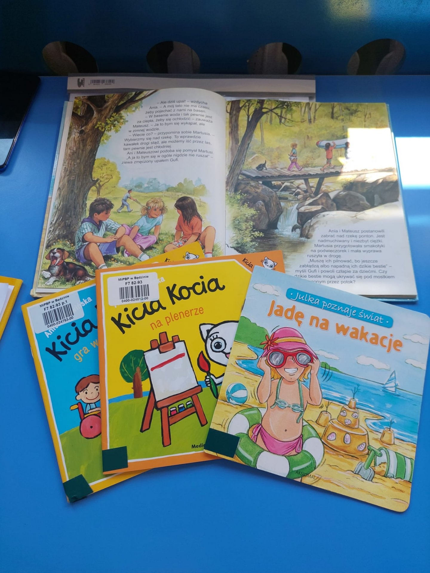 W piątek 11 sierpnia bibliotekarz Filii nr 7 Zamkowe odwiedził grupę przedszkolaków z Prywatnego Domowego Przedszkola oraz najmłodsze dzieci z grupy Poziomeczki z Prywatnego Żłobka Fasolka.