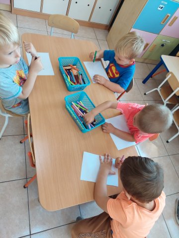 Przedszkolaki wysłuchały opowiadania "Martynka nad brzegiem rzeki", której przygody bardzo zaciekawiły dzieci i stały się przedmiotem interesującej dyskusji. Na zakończenie dzieci wykonały obrazki przedstawiające przygody Martynki.