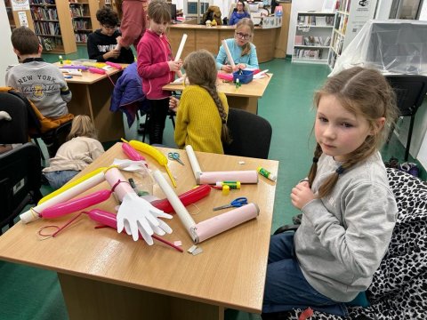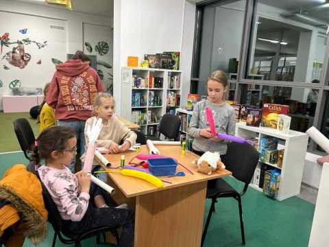 Tematem spotkania były mięśnie. Dzieci omówiły ich funkcję, rodzaje, to co wytwarzają i pobierają oraz wiele innych zagadnień, a wszystko w wesołej formie quizu abc z najdziwniejszymi odpowiedziami na świecie. Zabawna forma swoim absurdem utrwaliła zdobytą wiedzę, która została wykorzystana w trakcie warsztatu tworzenia modelu mięśni ręki. Biceps i triceps w formie rozciągliwych balonów okazały się bardzo ciekawymi mięśniami, które w swojej antagonistycznej formie stanowiły edukującą zabawkę. A już w grudniu ostatnie w tym roku spotkanie. Spojrzymy na świat prosto przez gałkę oczną...