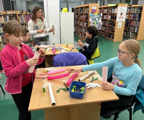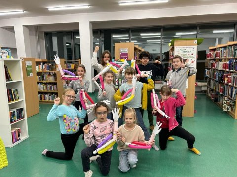 Skłon, wyprost, przysiad, sztanga! Wydawałoby się, że nasi Czytelnicy przenieśli się na siłownię. Ale nic bardziej mylnego! To tylko Klub Młodego Odkrywcy pt. "Ucho, serce i cała reszta" rozbrzmiewał wczoraj 22 listopada w Oddziale dla dzieci i młodzieży.