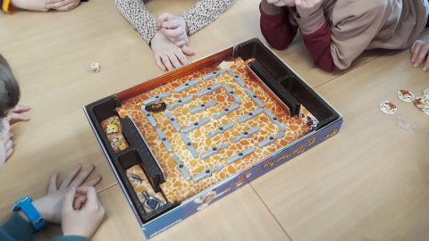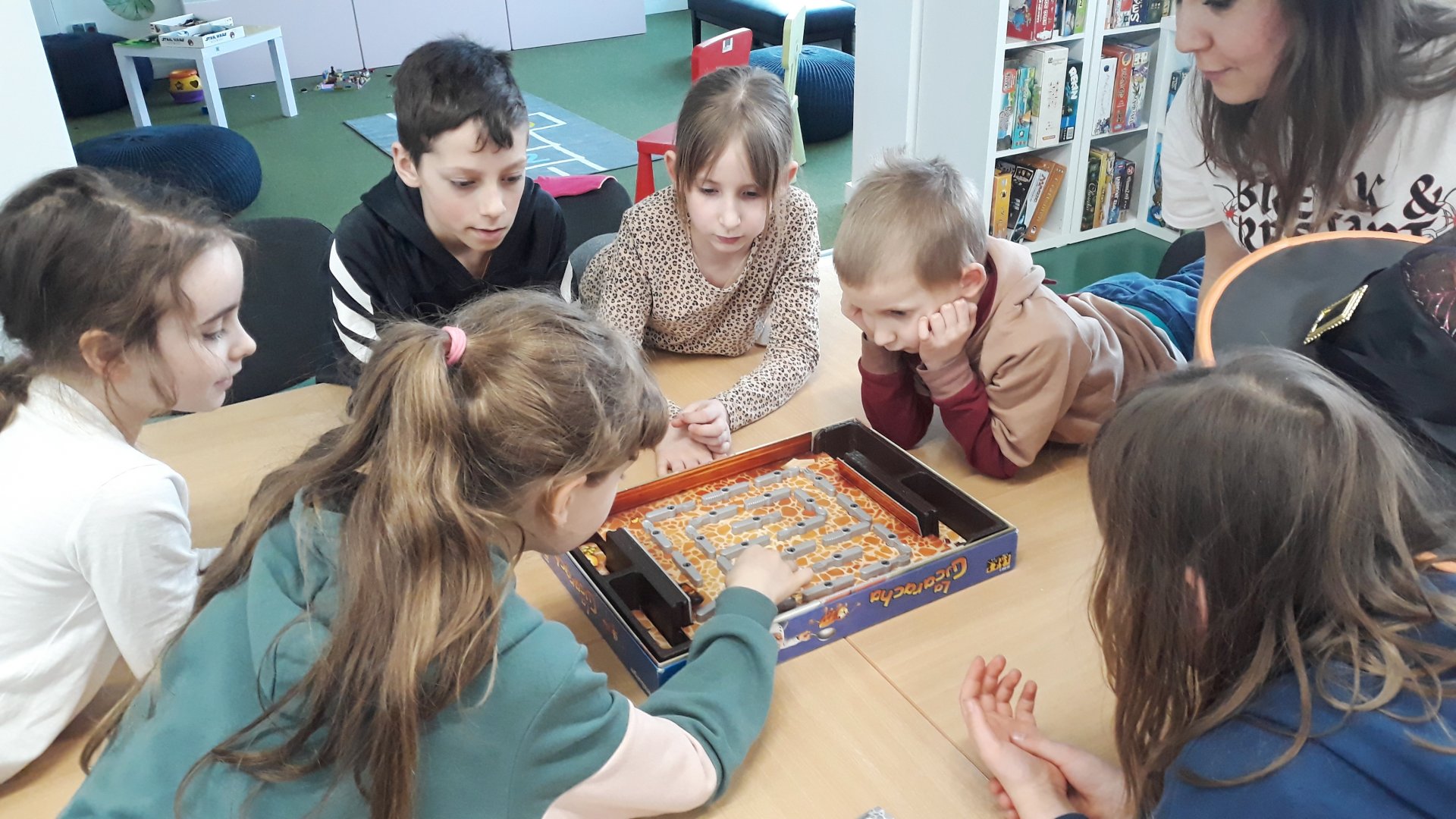 Pod tym tytułem kryją się "Środowe potyczki", czyli spotkania z grami planszowymi, które miały miejsce 5 kwietnia. Bibliotekarz wraz z młodymi uczestnikami zmierzył się z grą zręcznościową "Baba Jagna i zaczarowany las" gdzie przy pomocy odpowiedniego naciśnięcia rogów planszy czarownica docierała do magicznych przedmiotów. Jedyna zasada: nie zgubić kapelusza! Po rozgrywce pełnej skupienia i wyłonieniu zwycięzcy, dzieci postanowiły zmierzyć się także z kuchennym karaluchem w grze "La Cucaracha". Tworzyli labirynty ze sztućców tak by zwabić go do pułapki z sardynkami, serem, czekoladą lub chlebem. Jak się okazało najbardziej zasmakował on w chlebie doprowadzając do zwycięstwa naszego najmłodszego uczestnika.