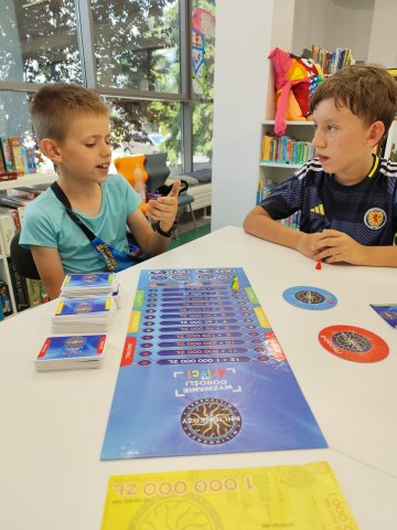 Podczas dzisiejszych zajęć zagraliśmy w dynamiczne gry. „ Milionerzy”, „Ktoś Ty” oraz „Hedbanz”. Niesamowite gry, które zapewniają dobrą zabawę, ale także rozwijają wyobraźnię, uczą przewidywania oraz podejmowania decyzji. W Ktoś Ty oraz Hedbanz gracz losuje kartę, na której napisane jest, kim jest i bez podglądania przykleja ją do opaski. Zadaniem graczy jest odgadnąć kim są - zwierzęciem, jedzeniem, czy przedmiotem. Gra Milionerzy Dorośli vs Dzieci to dynamiczna planszówka, w której dorośli i dzieci rywalizują odpowiadając na pytania. Jak w popularnym teleturnieju TVN! Wygrana drużyna zdobędzie złoty banknot milionerów! Co za emocje! Trudność stanowi upływający czas, który odmierza klepsydra. Spotkanie miało charakter edukacyjny, który wpisuję się w realizację 4 Celu Zrównoważonego Rozwoju ONZ „Dobra jakość edukacji”.