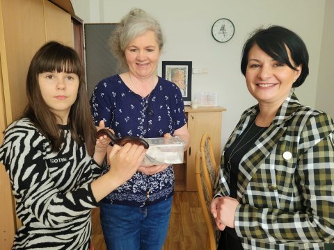 w Będzinie, Panią Beatę Jaworską-Niedbałę. Dzieci mogły także zapoznać się z innymi zwierzętami, które przedstawiła pasjonatka terrarystyki Wiktoria Toborek.