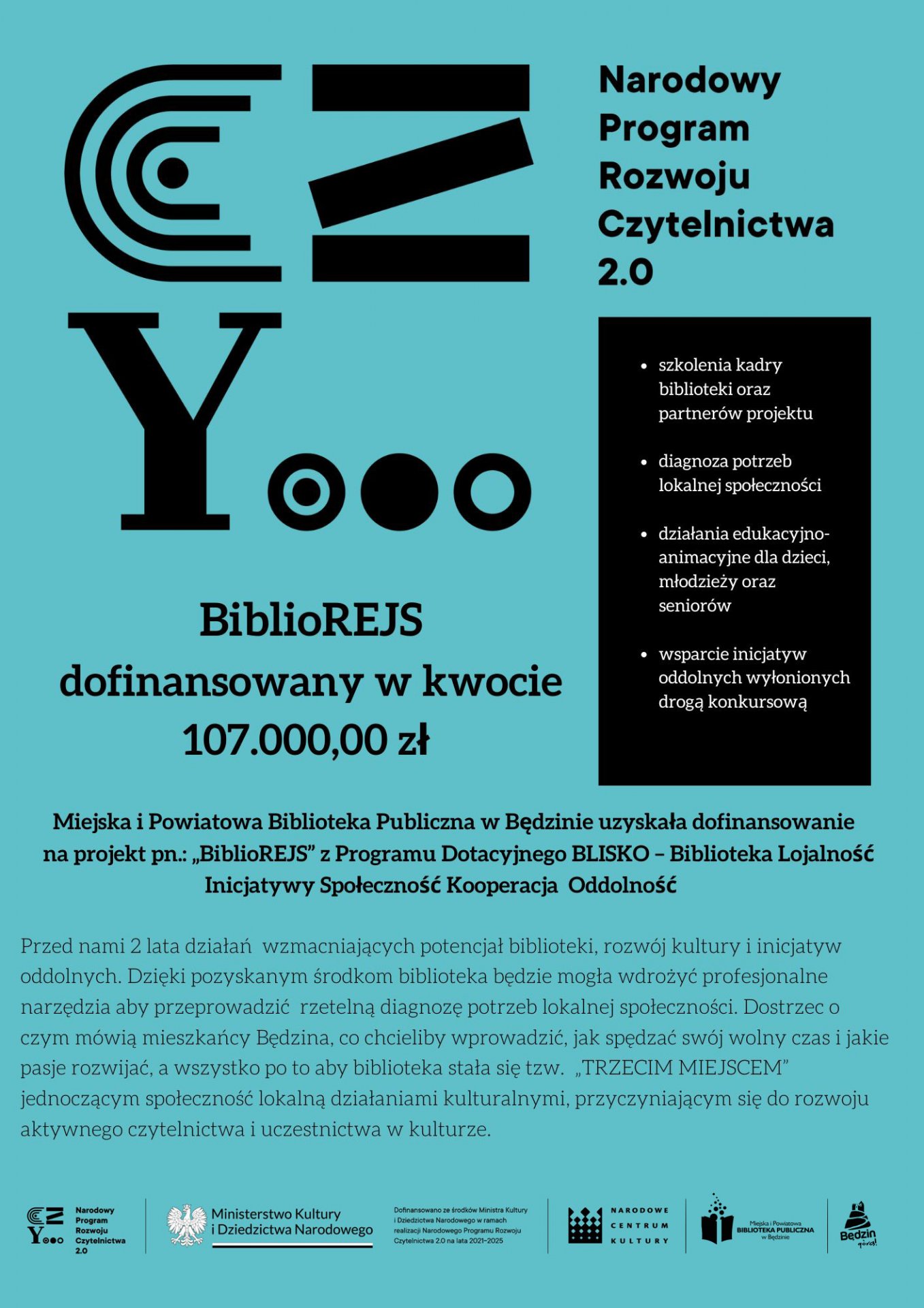 „Dofinansowano ze środków Ministra Kultury i Dziedzictwa Narodowego w ramach realizacji Narodowego Programu Rozwoju Czytelnictwa 2.0 na lata 2021-2025”