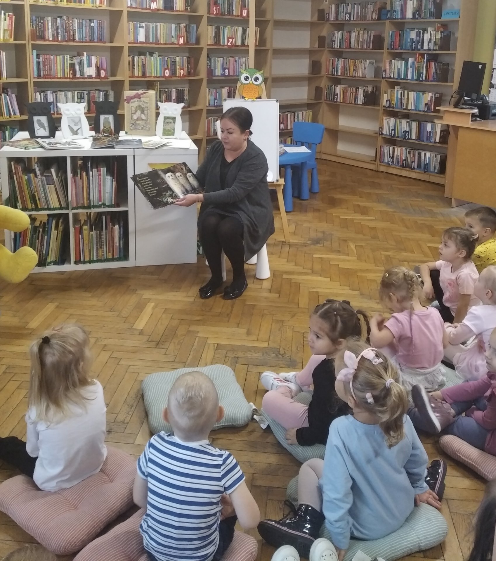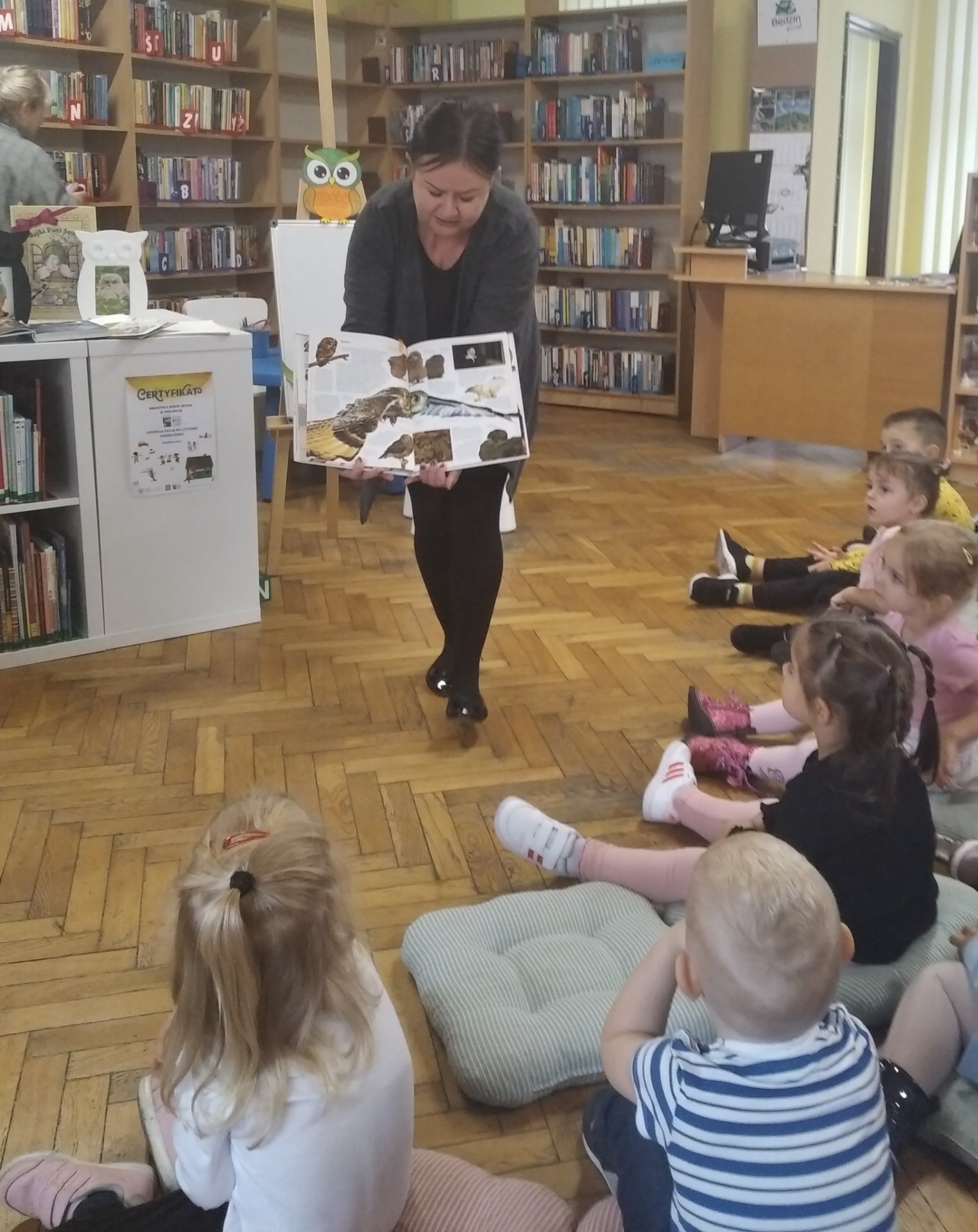 Sowa jest wybierana przez wielu twórców na bohatera opowiadań i wierszy. Grupa trzylatków z Przedszkola Miejskiego nr 6 w Będzinie odwiedziła dziś Filię nr 1 na Ksawerze, aby poznać ptasich przyjaciół z książek dla dzieci. Jedną z najpopularniejszych sówek jest ta, która towarzyszy wesołej drużynie z książek o Kubusiu Puchatku. Jest także bohaterka wiersza Jana Brzechwy, którą znajdziemy na kartach "Zwierzyńca", oraz postać z wiersza Ludwika Jerzego Kerna.