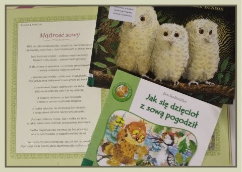 O tym jak nocny myśliwy wygląda, co jada i jakie są jego zwyczaje dzieci dowiedziały się z fragmentu książki pt. " Mieszkańcy lasu". Prawdziwe sowy natomiast znaleźliśmy w książce należącej do serii "Patrzę, Podziwiam, Poznaję", w części "Orły, sowy, sępy ..." autorstwa Jemimy Parry-Jones.