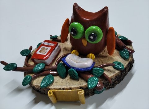 Patrząc na książkowe ilustracje dzieci zauważyły, że każda sowa jest inna. A zarazem wszystkie są piękne. Przedszkolaki przyjęły dla swojej grupy nazwę - Sówki. Na pewno stworzą wspólnie drużynę mądrych, wspaniałych przyjaciół. Dzieci przyjęły od bibliotekarza pamiątkową sówkę, która zamieszka razem z nimi w przedszkolnej sali. Teraz przed nimi specjalne zadanie. Trzeba nowemu zwierzakowi wybrać odpowiednie imię. Bardzo nas ciekawi, jakiego dokonają wyboru. Odpowiedź poznamy już wkrótce. Kolejne spotkanie w bibliotece już jest zapisane w naszym kalendarzu.