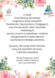 Z najlepszymi życzeniami dla wszystkich nauczycieli, wychowawców oraz pracowników oświaty w Dniu Edukacji Narodowej - życzą będzińscy bibliotekarze!