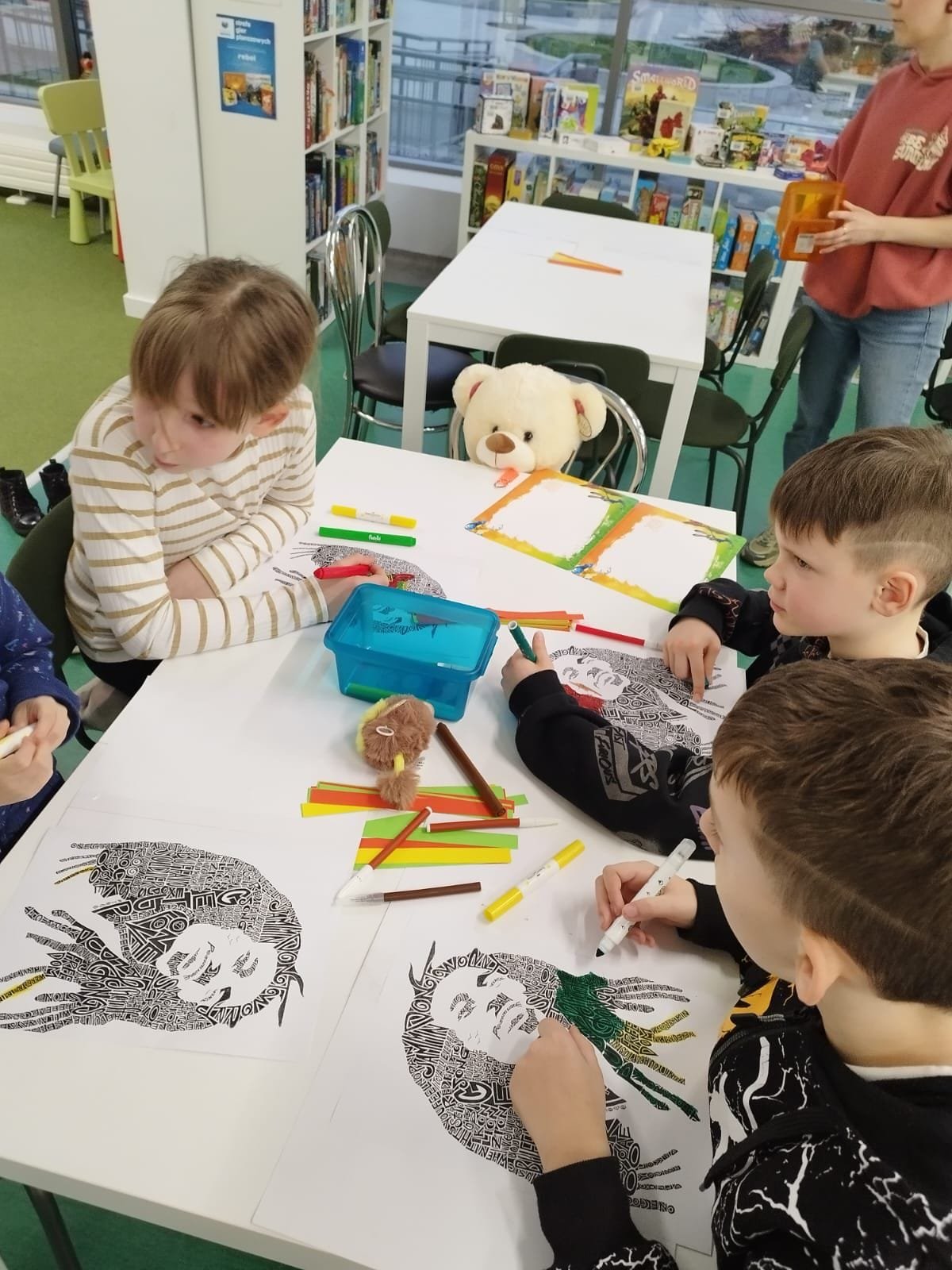 Uczestnicy dowiedzieli się także jak powstała muzyka reggae, jakie przesłanie niesie i co dzięki niej chciał przekazać Marley. Artysta, pomimo wyluzowanego rytmu gatunku muzycznego, śpiewał o sprawach ważnych, a słowa jego piosenek wielokrotnie pomagały ludziom zawalczyć o siebie. W trakcie spotkania obejrzeliśmy także fragment koncertu, który doskonale obrazował to jak Bob Marley czuł muzykę i się do niej odnosił. Po ogromie inspiracji, jaką zapewniło nam jamajskie brzmienie wykonaliśmy kolorowe portrety artysty. Oczywiście w barwach flagi Jamajki.
