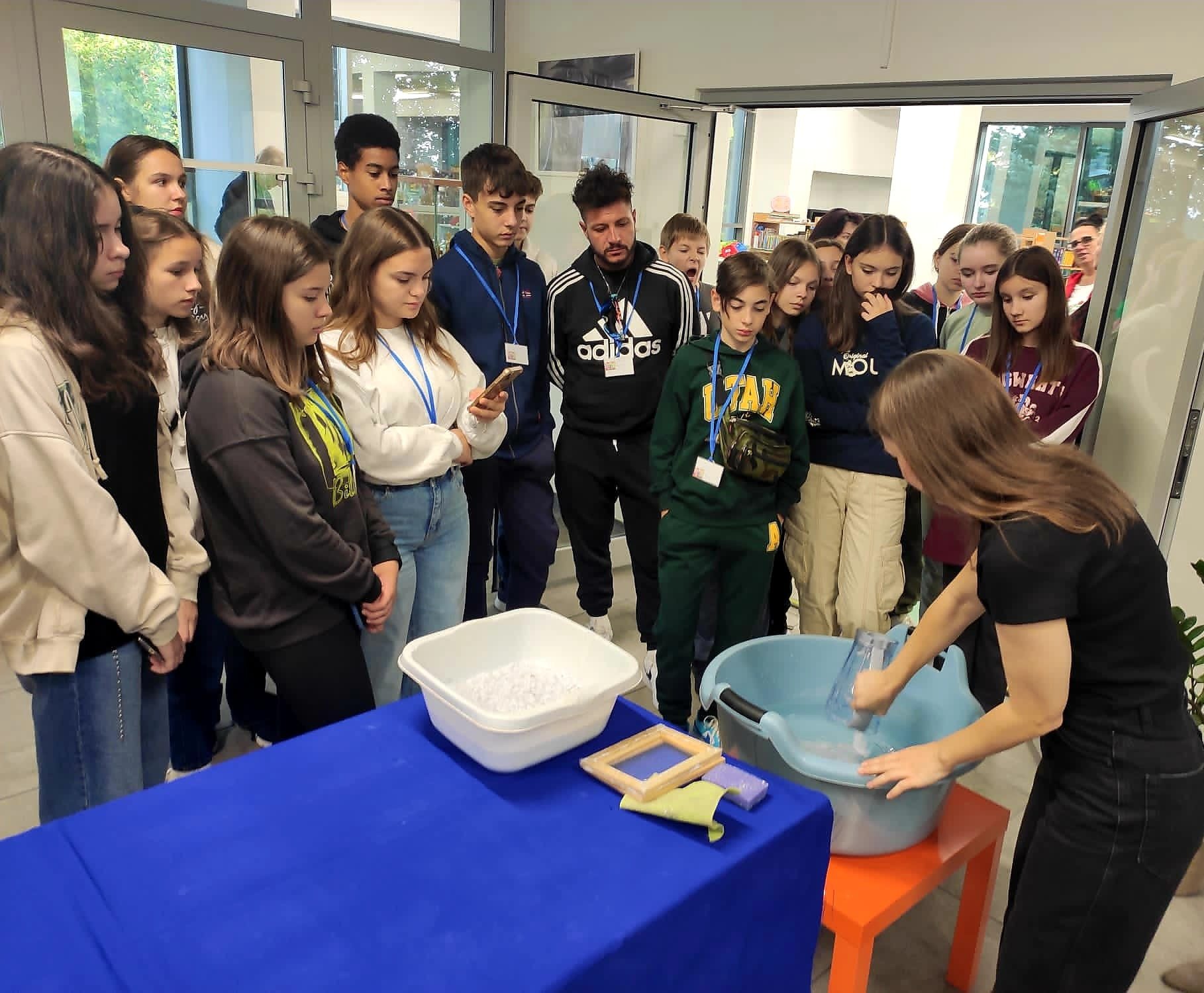 Założeniem projektu jest rozwinięcie wśród młodzieży chęci działania, troski o środowisko oraz aktywności poznawczej, które poszerzą ich wiedzę oraz zainteresowanie ekologią. Ideą prowadzonych dziś zajęć było pokazanie, jak możemy wykorzystywać surowce wtórne. Warsztaty dotyczyły tematyki leśnej, a ich głównymi bohaterami były drzewa. Niezwykle ważne rośliny, które wpływają na nasze środowisko pokazały się z zupełnie innej strony. Dzięki wykorzystaniu wiedzy z książki pt. „O czym szumią drzewa” Petera Wohllebena, uczniowie mogli dowiedzieć się, że w lesie istnieje grzybowy Internet, brzoza to niezwykle waleczne drzewo, a iglaki nie narzekają na pożar. Zwieńczeniem zajęć było wytworzenie własnego papieru z makulatury oraz rozmowa o tym, że plastikowe reklamówki w swoim pierwotnym założeniu miały być ratunkiem ekologicznym chroniącym drzewa przed wycinką. W rzeczywistości produkcja jednorazówek oraz ich nadużywanie przez ludzi może doprowadzić do prawdziwej katastrofy ekologicznej. Dlatego też należy przede wszystkim zmienić sposób myślenia i działania w społeczeństwie.