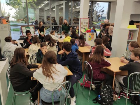 Będzińska biblioteka gościła dziś młodzież z Grecji, Chorwacji, Bułgarii, Rumunii oraz Włoch, która przyjechała do Będzina w ramach projektu Erasmus+ „Handy hands – happy children” realizowanego przez Szkolę Podstawową nr 1w Będzinie.