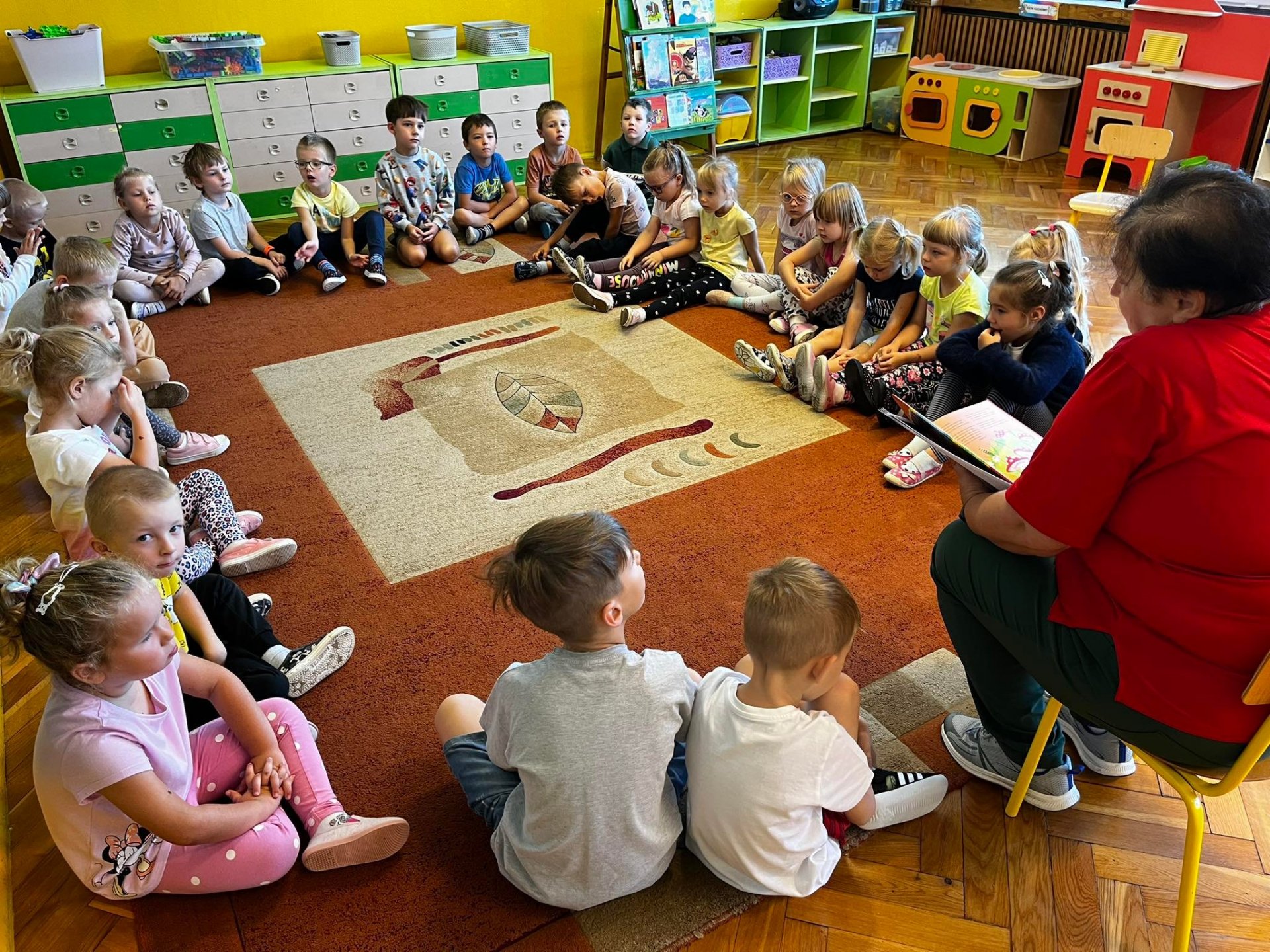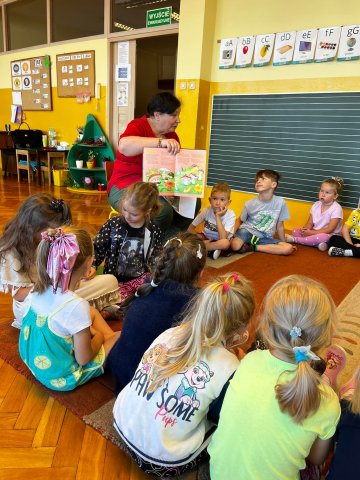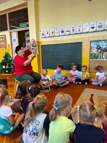 Co pani jesień w darze nam przyniesie? Na to pytanie próbowały odpowiedzieć wraz z bibliotekarzem Filii nr 2 Warpie dzieci z Przedszkola Miejskiego nr 10 w Będzinie. Przedszkolaki, aby lepiej zgłębić temat wybrały się w magiczną podróż literacką, podczas której poznały dary jesieni oraz zwierzęta, które przygotowują się jesienią do zimy. Z drzew sypią się kasztany, a potężne dęby rozrzucają żołędzie. W sadach dojrzewają owoce, a w sadach i polu zaczyna się zbiór ostatnich owoców i warzyw. Często wyruszamy też na grzybobranie. Jesień to piękna i kolorowa pora roku, która przygotowuje przyrodę do odpoczynku na kilka długich miesięcy.