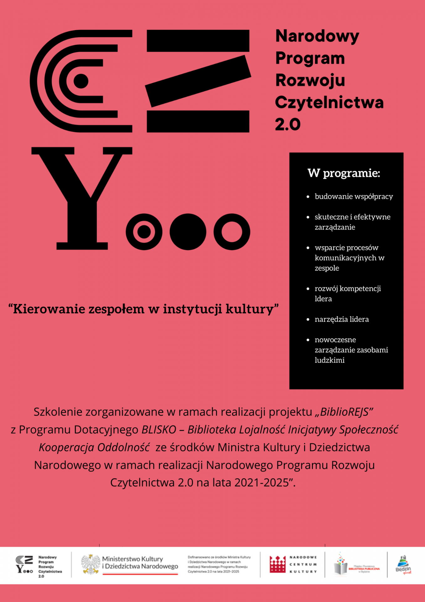W dniu 1 października br. w ramach realizowanego projektu „BiblioREJS” odbyło się szkolenie warsztatowe pn.: „Kierowanie zespołem w instytucji kultury”.
