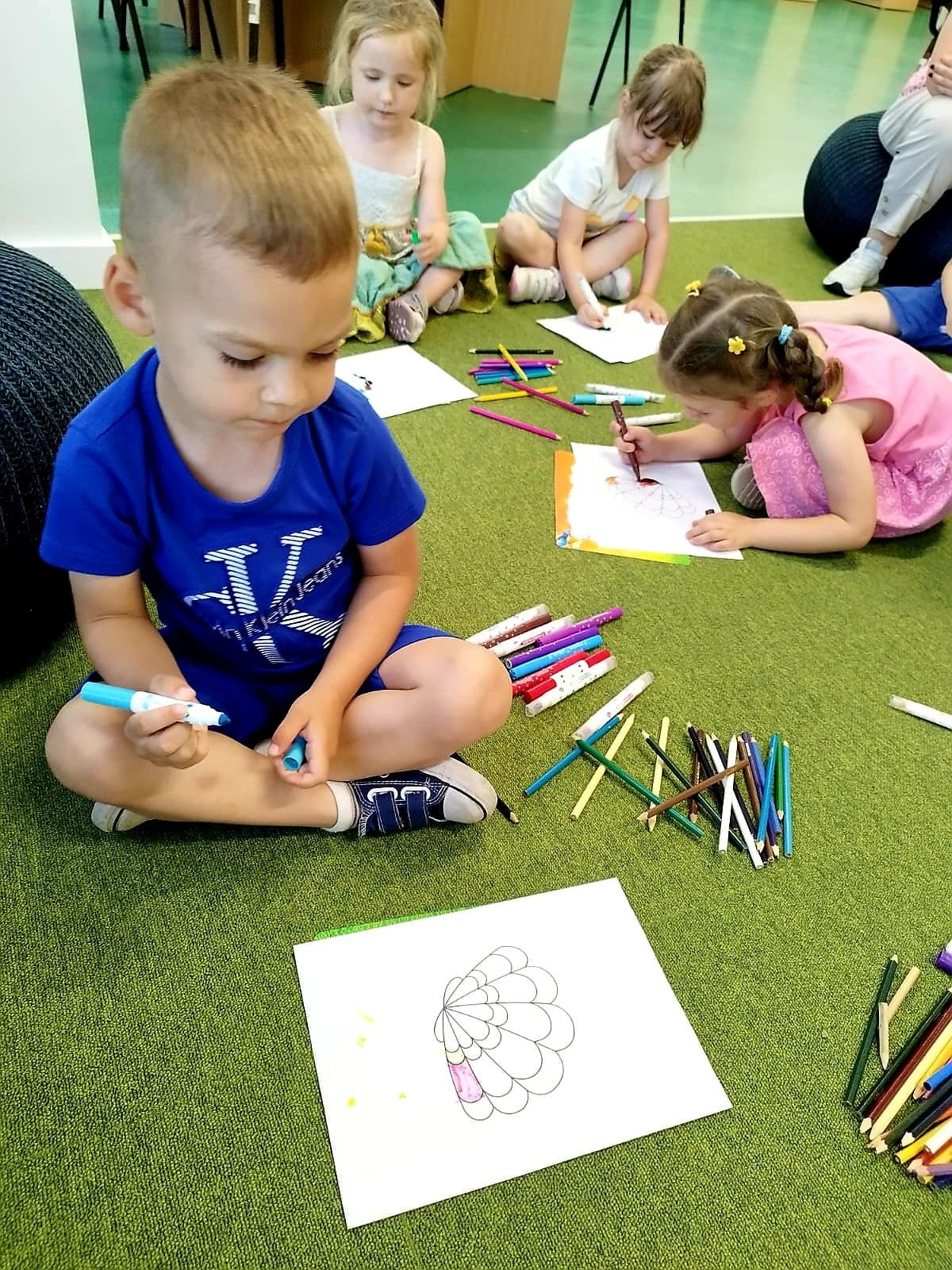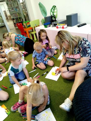 Podczas spotkania przedszkolaki opowiadały, gdzie najchętniej chciałyby pojechać z rodzicami na wakacje, poznały ciekawą książeczkę pt. „Morze” z edukacyjnego cyklu "Obrazki dla maluchów" dowiadywały się interesujących zagadnień o polskim morzu.