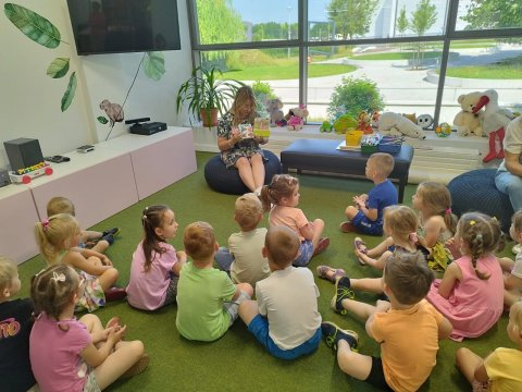 Dzieci z Przedszkola Miejskiego nr 1 w Będzinie odwiedziły oddział dla dzieci i młodzieży uczestnicząc w zajęciach o bezpiecznych wakacjach