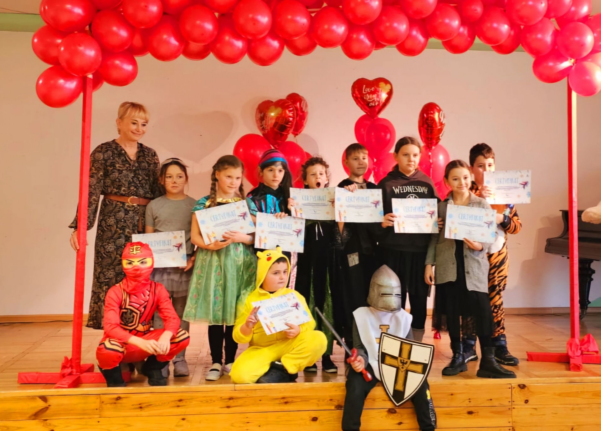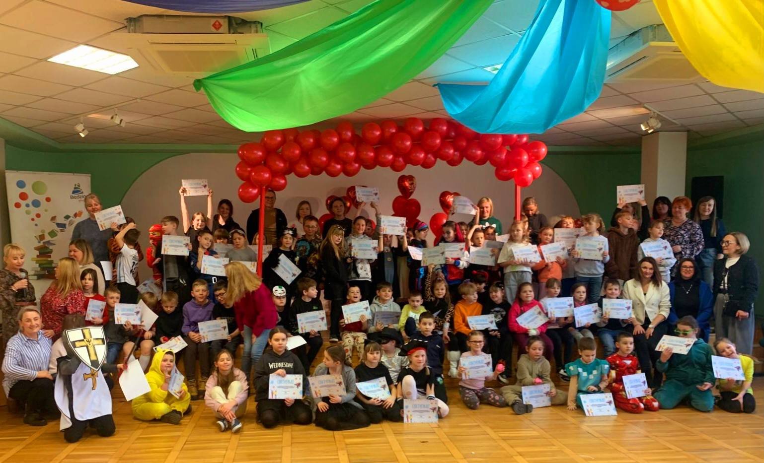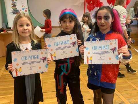 Wspólnie z nimi bibliotekarze przy wsparciu cudownych Pań z Ośrodek Kultury w Będzinie przystąpili do tanecznych pląsów i różnych zabaw. Były warsztaty, podczas których powstawały kolorowe gniotki literacki kącik, w którym dzieci słuchały krótkich rymowanych zagadek z którymi świetnie sobie radziły magiczny dywan, który przeniósł dzieci na piaskową plaże dostarczając mnóstwa radości podczas poszukiwań skarbów. Nie zabrakło również studia wspaniałych tatuaży w wykonaniu niezastąpionych animatorek z Ośrodka Kultury. Każdy z uczestników półkolonii otrzymał również certyfikat aktywności zimowych z rąk Pani Anny Drzewieckiej, Pełnomocnika Prezydenta Miasta Będzina.
