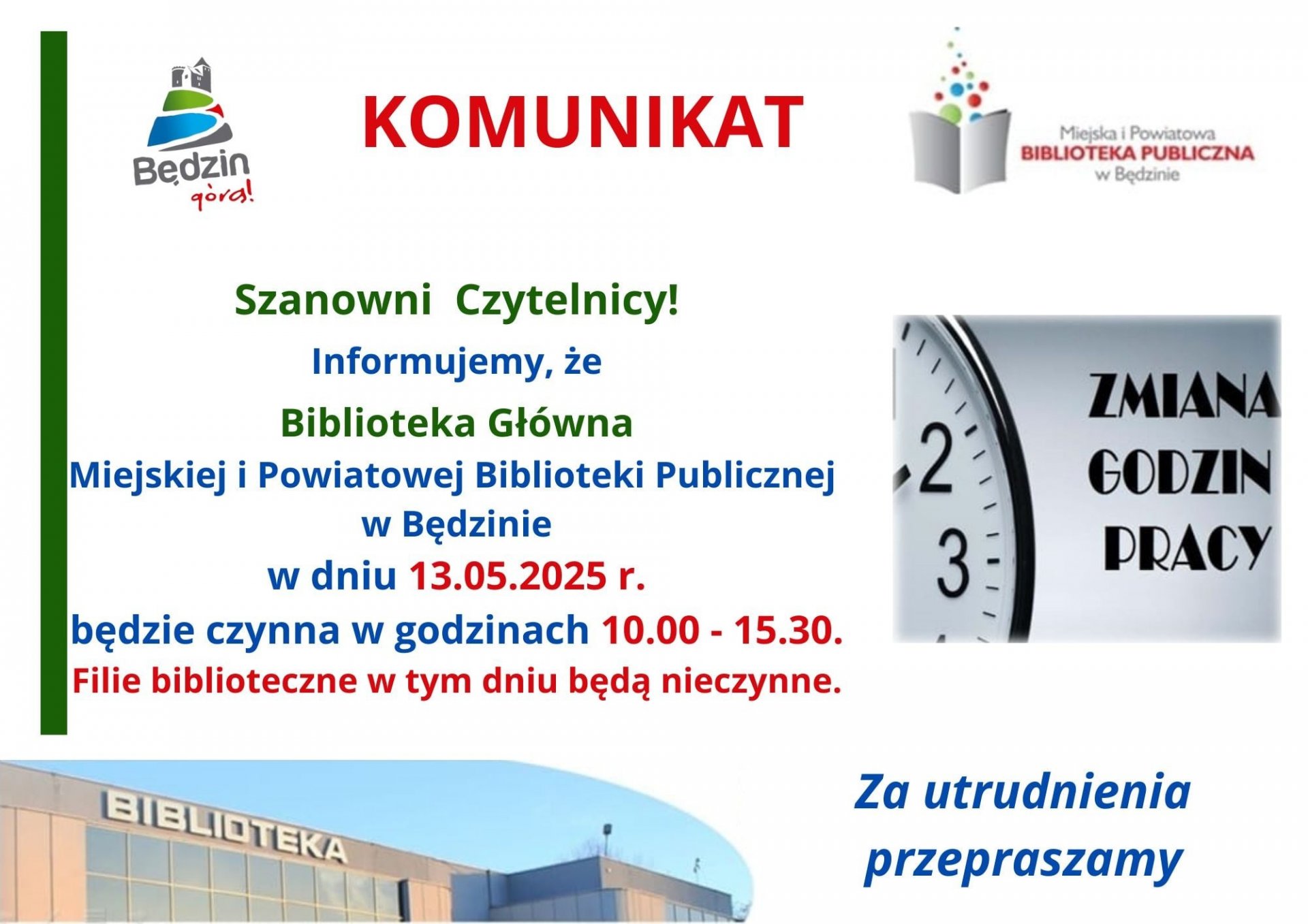 Komunikat dot. pracy Biblioteki w dniu 13.05.2025 r.