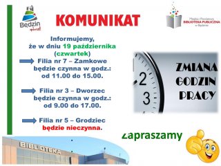 Komunikat dot. pracy Filii w dniu 19 października br.