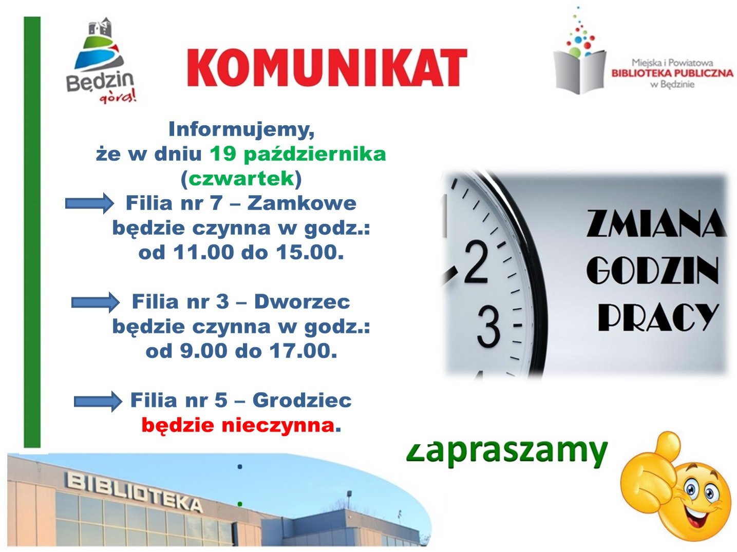 → Filia nr 5 – Grodziec będzie nieczynna.
