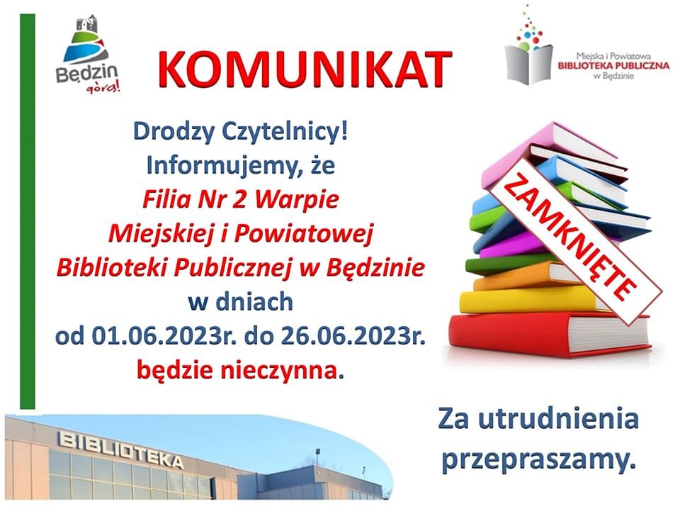 Komunikat dot. zamknięcia Filii nr 2 - Warpie