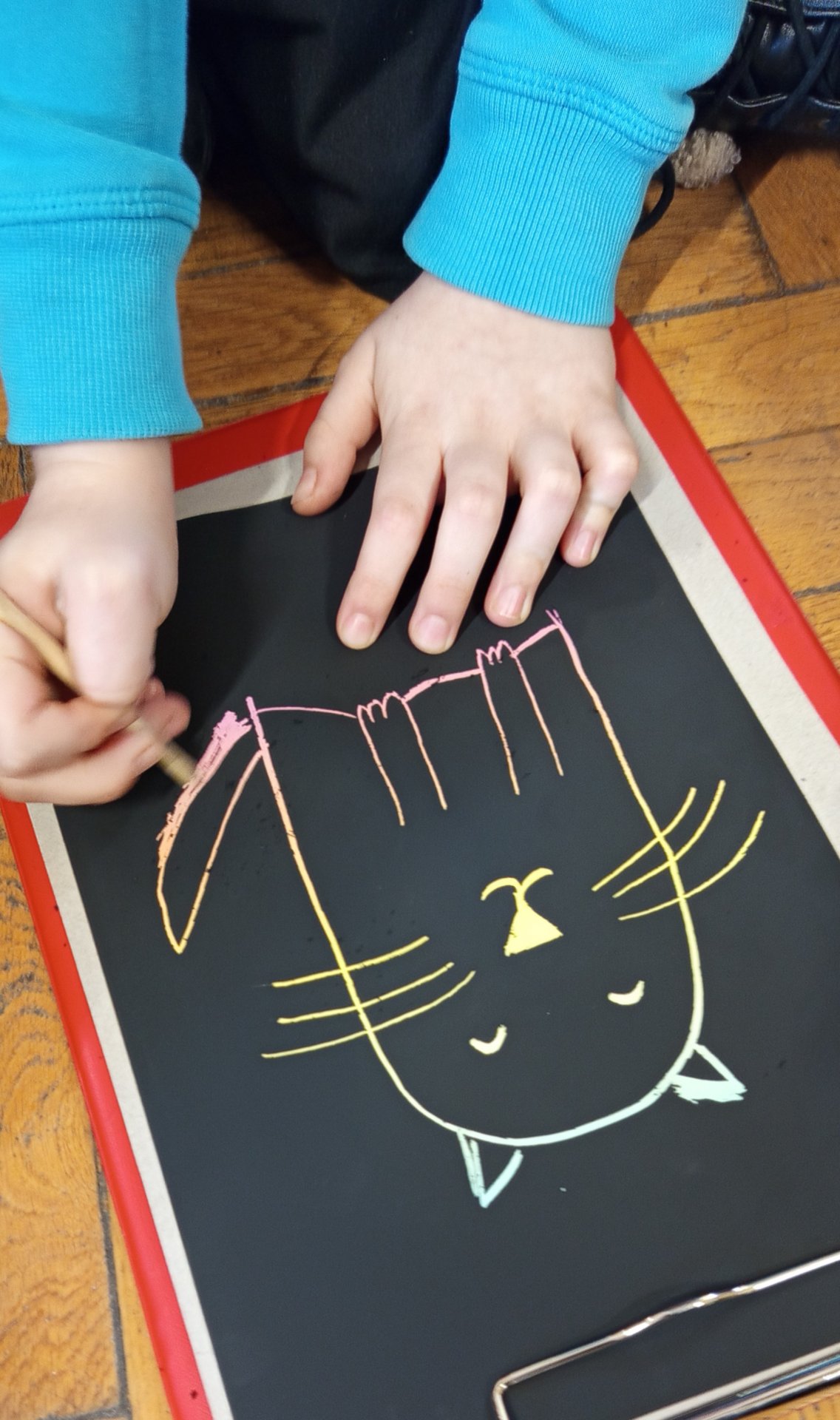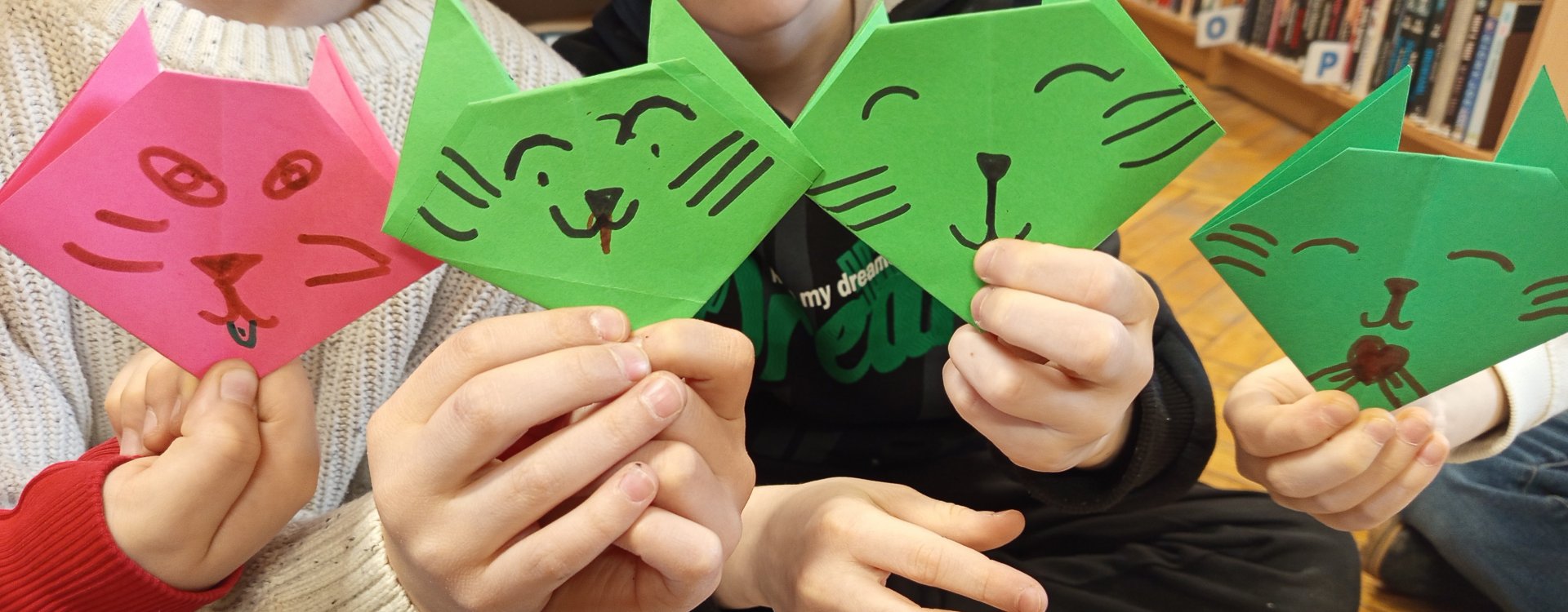 Fantastyczne przysłowia związane z ukochanymi zwierzakami opisuje i wyjaśnia "Mój pierwszy słownik przysłów" autorstwa Małgorzaty Białek. Można w nim przeczytać między innymi o powiedzeniu "gdy kota nie ma, myszy harcują" i "kot zawsze na cztery łapy spada". Poza mnogością książek o futrzanych bohaterach ogrom jest także pomysłów na prace plastyczne z nimi związane. Podczas dzisiejszych zajęć dzieci wykonały kota origami, przedstawiły jego sylwetkę wykorzystując papier do wydrapywania i przygotowały kolorowe plastelinowe figurki.