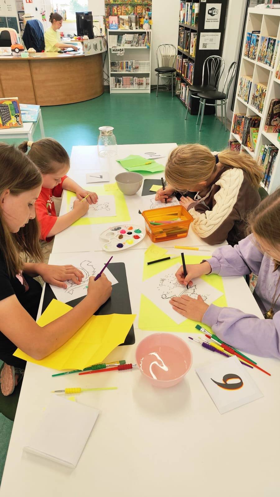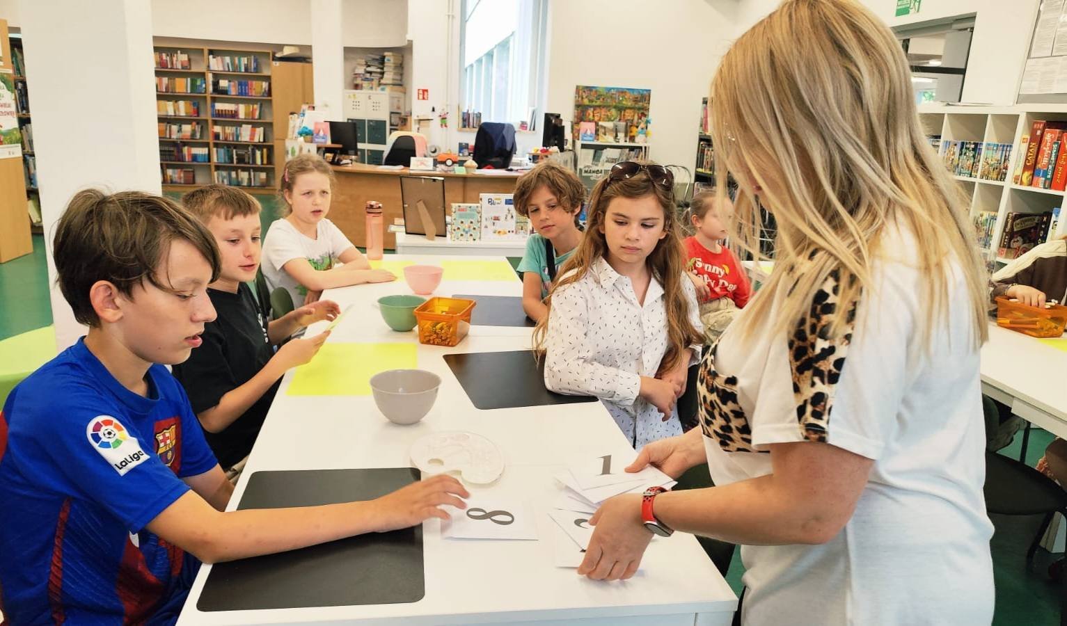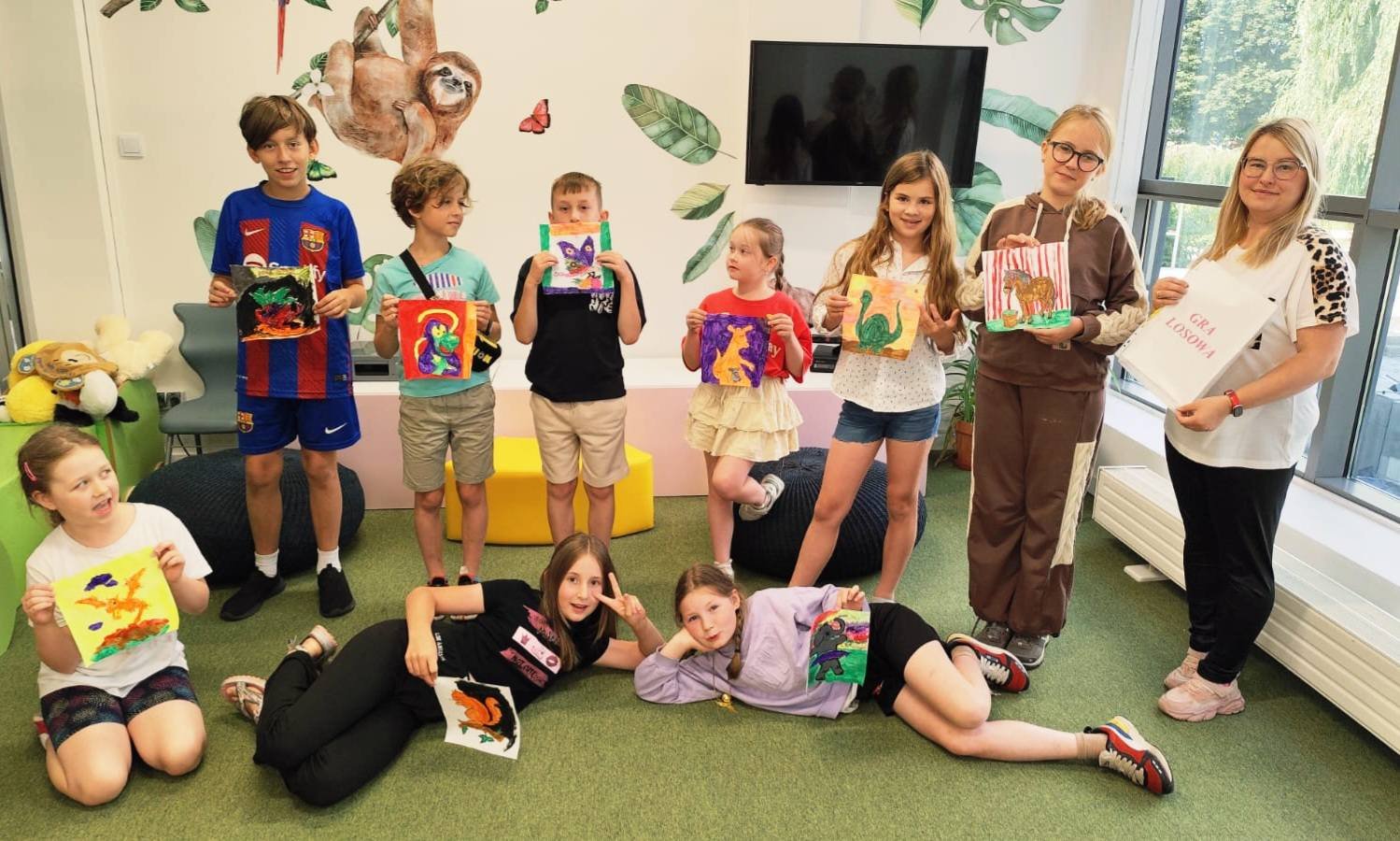 Podczas kolejnych zajęć z cyklu "Bibliowakacje pełne niespodzianek" bibliotekarze Oddziału dla dzieci i młodzieży zaprosili dzieci w magiczny świat kropek, w ktorym mogły stworzyć własne, kolorowe dzieła sztuki, których bohaterem był świat natury.