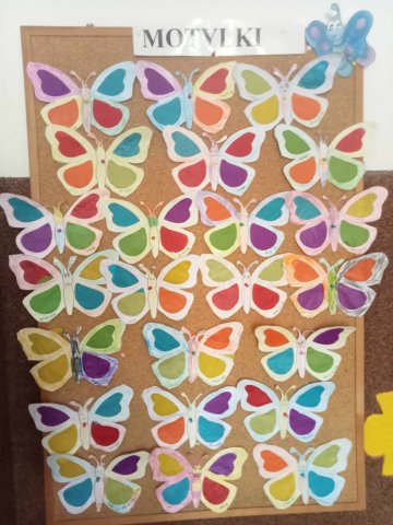 Na zakończenie zajęć "Motylki" wykonały przepiękne" Wiosenne motyle".