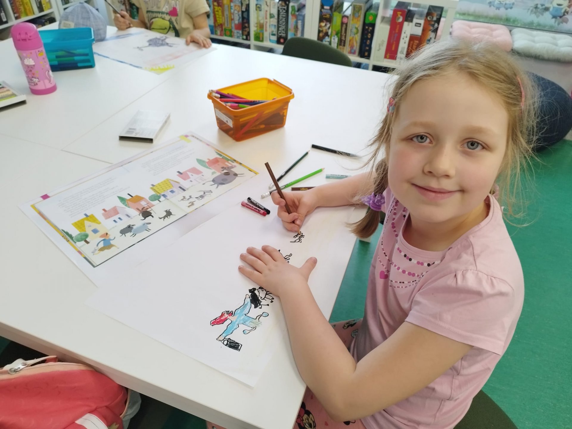 Wystarczy uwierzyć w siebie i zrobić coś miłego dla innych. Krowa Kunegunda mimo kiepskiej motywacji do zmiany trybu życia, gdy uwierzyła w siebie, potrafiła pociągnąć za sobą innych. Stała się idolką, motywacją i przykładem, że ruch i dbanie o siebie to zdrowie. Prosiak Poldek kochał tańczyć ale wątpił w swoje umiejętności. Dzięki wsparciu rodziny i przyjaciół odzyskuje wiarę w siebie i spełnia marzenia. Aby wszystkie pozytywne emocje z opowiadania zostały długo zapamiętane, dzieci miały za zadanie wybrać spośród trzech historii, jedną opowieść i namalować ją techniką mieszaną. To technika, gdzie artysta w ramach jednego dzieła stosuje różne techniki plastyczne. Spotkanie miało charakter edukacyjny, który wpisuję się w realizację 4 Celu Zrównoważonego Rozwoju ONZ "Dobra jakość edukacji”.