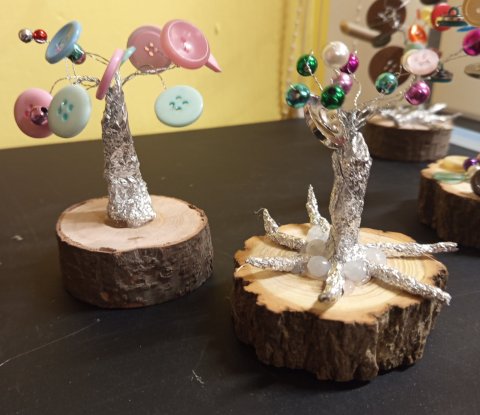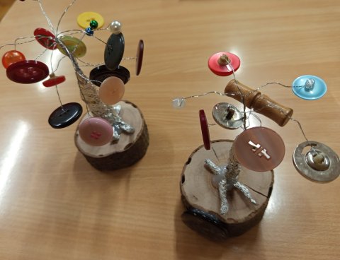 Z tej okazji grudniowe spotkanie kreatywnych zajęć literackich dla dzieci "Fantazja" bibliotekarka Filii nr 1 Ksawera zadedykowała właśnie guzikom. Guzik w literaturze i historii - złapany na widok kominiarza czy znaleziony na drodze – guzik od wieków jest symbolem szczęścia i pomyślności. Jak opowiada Charles Panati w "Niezwykłych dziejach zwykłych rzeczy", guzik ma dla ludzkości znaczenie już od setek lat. Guzik ma również swoje szczególne miejsce w "Akademii Pana Kleksa". Kto pamięta słynne guziki w Akademii? My poszliśmy tropem tej magii. Odkryliśmy fascynującą książkę Michała Rusinka "Guzik : o Janie Brzechwie dla dzieci", która opisuje, że podobnie jak Adaś Niezgódka z popularnej lektury szkolnej, mały Janek Brzechwa był kolekcjonerem guzików. Zdobył nawet egzemplarz od płaszcza naczelnika stacji kolejowej, w sposób którego oczywiście nie pochwalamy. To wspaniała opowieść o życiu, twórczości i inspiracjach autora jednej z ulubionych książek dzieci. Podczas zajęć uczestnicy zainspirowani tym magicznym przedmiotem, stworzyli przepiękne guzikowe drzewka szczęścia.