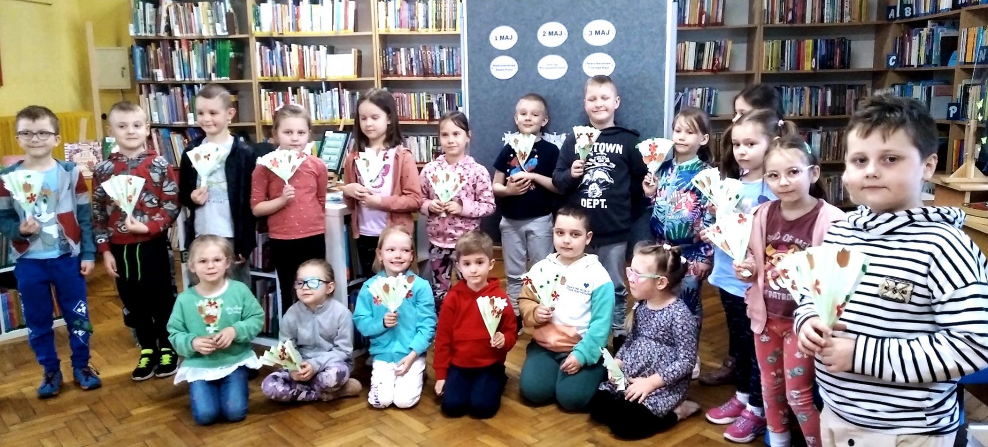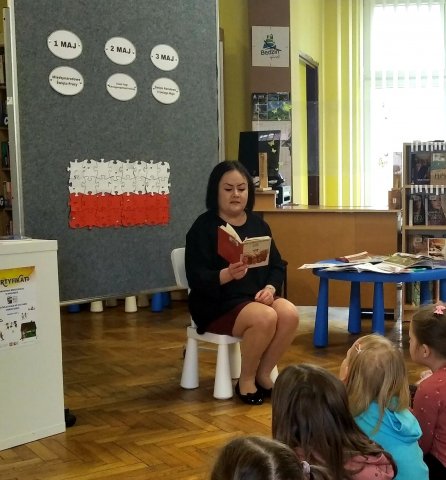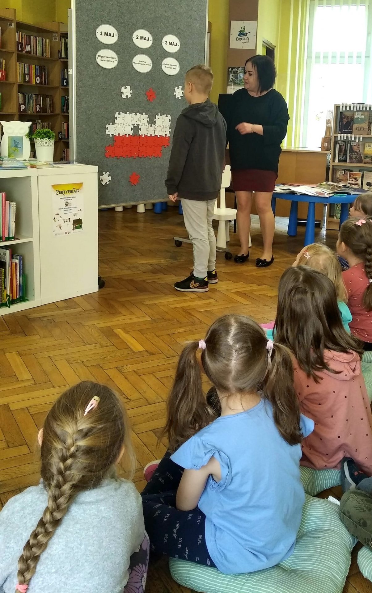 Książka "Polska - to lubię!: encyklopedia dla całej rodziny" w bardzo przystępny dla młodego czytelnika sposób przedstawia istotę wspomnianych uroczystości. Podobnie jest z "Polskimi symbolami" Dariusza Grochala, które należą do serii Klubu Małego Patrioty. Grupa Sówek Przedszkola nr 6 w Będzinie podczas dzisiejszej wizyty w Filii biblioteki na Ksawerze dowiedziała się sporo o historii naszego kraju. Dzieci mają dużą wiedzę o kraju, orientują się kiedy uchwalono w Polsce konstytucję i co to oznaczało dla państwa. Bez przeszkód odgadły więc zagadki o hymnie, fladze i orle białym. Przedszkolaki wiedzą rownież jak ważny jest szacunek do tradycji. Z książki pt. "Witaj majowa jutrzenko: antologia wierszy dla dzieci" wybraliśmy kilka utworów, które zainspirowały uczestników zajęć do pracy nad biało-czerwonym bukietem kwiatów.