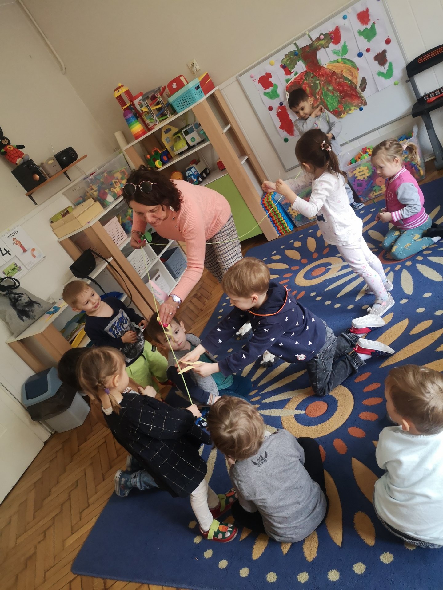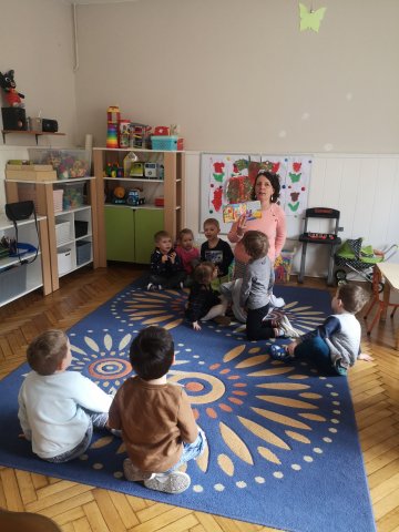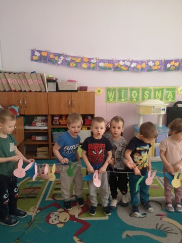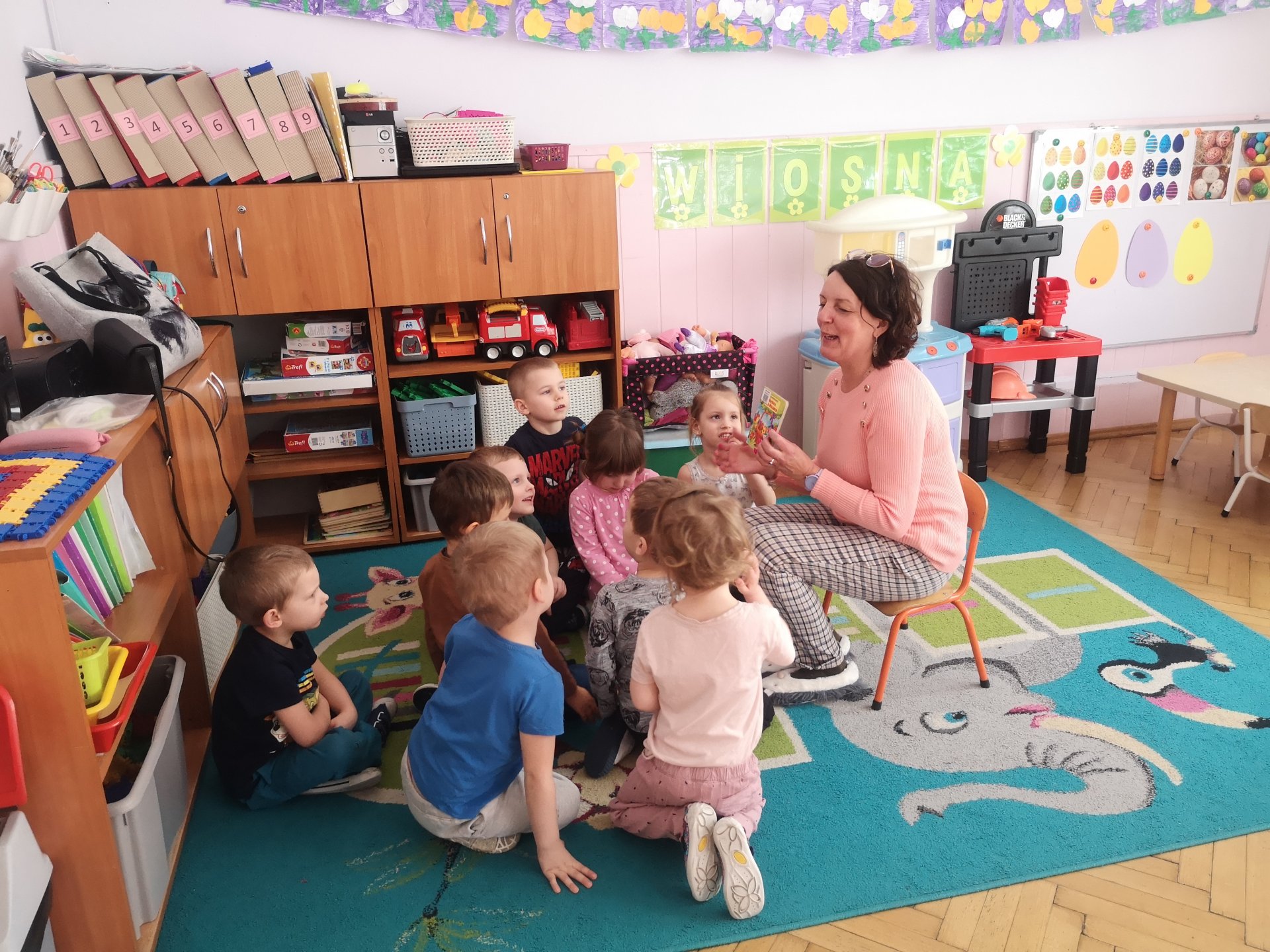 Bibliotekarz z Filii nr 3 na Dworcu odwiedził Przedszkole Miejskie nr 9 w Będzinie. Zbliżają się Święta w związku z tym dzieci chętnie wysłuchały bajki Edyty Wygonik-Barzyk pt: "Nadchodzą Święta Wielkanocne", opowiadającej o przygotowaniach do świąt. Przedszkolaki chętnie wypowiadały się o rodzinnych tradycjach wielkanocnych w swoich domach. Następnie wspólnie z Bibliotekarzem kolorowały zające i wykonały ozdobną girlandę.