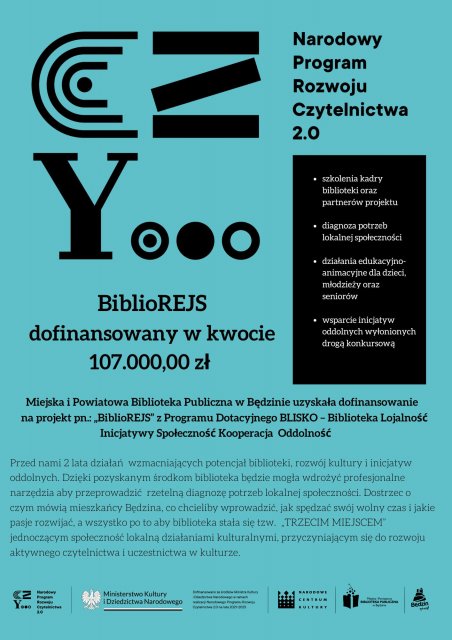 Biblioteka w Będzinie zdobyła dofinansowanie 107.000,00 zł na projekt pn.: „BiblioREJS” z Programu Dotacyjnego BLISKO – Biblioteka Lojalność Inicjatywy Społeczność Kooperacja Oddolność Narodowego Centrum Kultury.