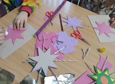 Marcowe spotkanie "Fantazji" - kreatywnych zajęć dla dzieci, które odbywają się w filii nr 1 Ksawera to wizyta w świecie magii, pełnym wróżek, czarodziejów i czarownic. Wiele książek opowiada o niesamowitych krainach i bohaterach, którzy potrafią zmieniać rzeczywistość z pomocą magicznych zaklęć i specjalnych eliksirów. Książka John'a Malam'a pt. "Wielka księga potworów, wróżek, smoków i olbrzymów" to pięknie ilustrowana kolekcja dziwnych stworów z całego świata. Dowiedzieliśmy się z niej wielu ciekawostek. Wiemy już, że niektóre wróżki mają zdolność do zmiany kształtu. Mogą stać się piękne, brzydkie a nawet niewidzialne. Warto także zapamiętać, że ulubionym napojem wróżek jest mleko. Ciekawymi stworzeniami są z pewnością także elfy. Niektóre z nich potrafią nieźle napsocić, powodując na przykład supły we włosach. Udało się nam znaleźć wiadomości o lubianych wróżkach. Dowiedzieliśmy się na czym polega ich magia, a także kim są wróżka zębuszka i wróżka chrzestna. We fragmencie poświęconym ogrom i wiedźmą przeczytaliśmy, że popularny z bajki ogr nosi imię pochodzące od niemieckiego słowa "schreck", które oznacza strach. Zachwyceni książką porozmawialiśmy o magii i rozwiązaliśmy zagadki oraz krzyżówkę związaną z czarami. Niewątpliwie jednym z najważniejszych atrybutów czarowników jest magiczna różdżka. Każdy uczestnik dzisiejszego spotkania chciałby móc coś wyczarować. Dlatego dzieci ochoczo zabrały się do pracy nad projektem i wykonaniem własnych różdżek.