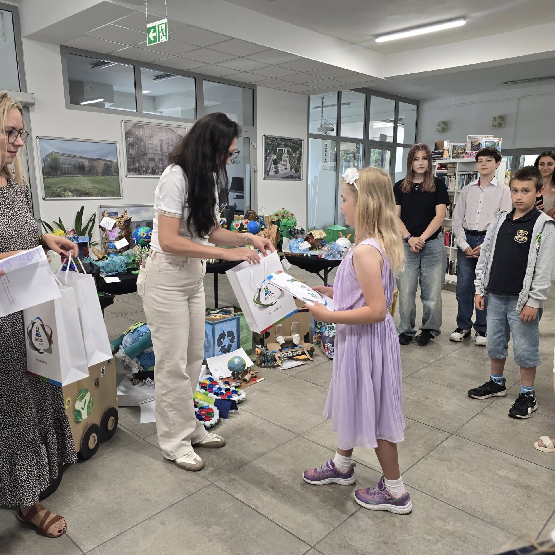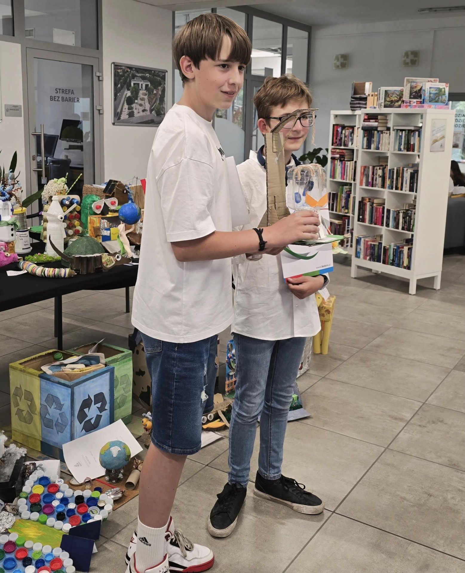 W poniedziałek - 23 czerwca br. - mieliśmy przyjemność gościć laureatów konkursu ekologicznego "EKO RZEŹBA", którym zostały wręczone nagrody i pamiątkowe dyplomy. Zadaniem konkursowym uczestników było stworzenie z materiałow zcrecyklingu rzeźby oddającej ideę ochrony środowiska i hasło "Nasza moc, nasza planeta". Jak młodzi będziniacy poradzili sobie z wyzwaniem można zobaczyć w bibliotece na przygotowanej ekspozycji prac. Wszystkim uczestnikom konkursu gratulujemy i życzymy kolejnych sukcesów.