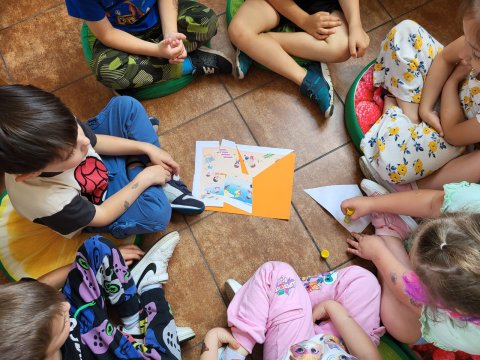 Na zakończenie uczestnicy otrzymali kolorową planszę przypominającą o ważnych regułach bezpieczeństwa na wakacjach. Przedszkolaki bardzo aktywnie uczestniczyły w zajęciach i chętnie dzieliły się swoimi planami na nadchodzące wakacje.