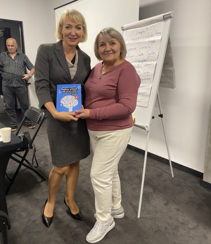 Dziękujemy serdecznie Pani Katarzynie Dettlaff-Lubiejewskiej prowadzącej warsztat, która na co dzień kieruje Biblioteką Babie Lato w Gdańsku i specjalizuje się w zajęciach treningu mózgu oraz biblioterapii w szczególności dla osób starszych.