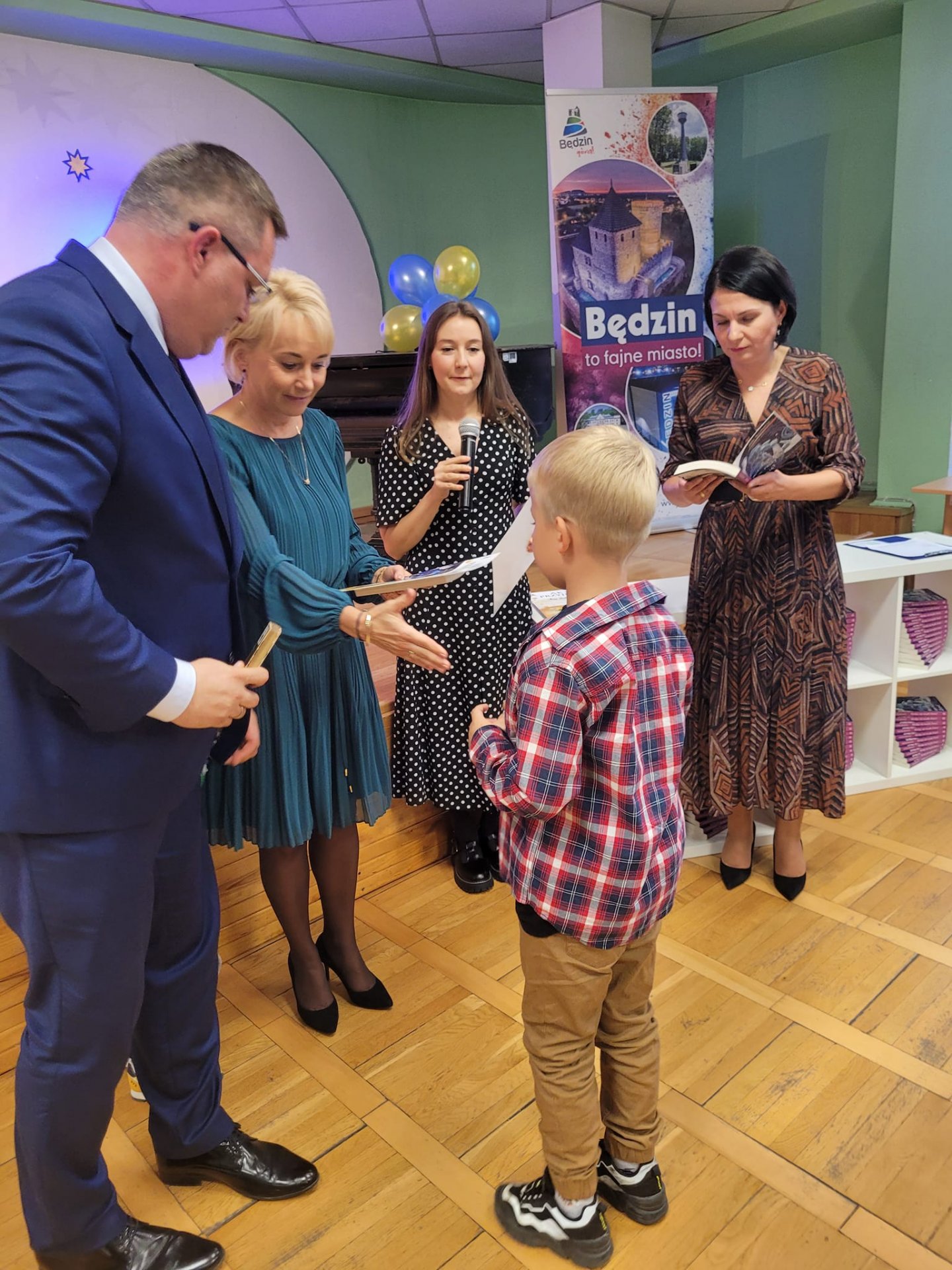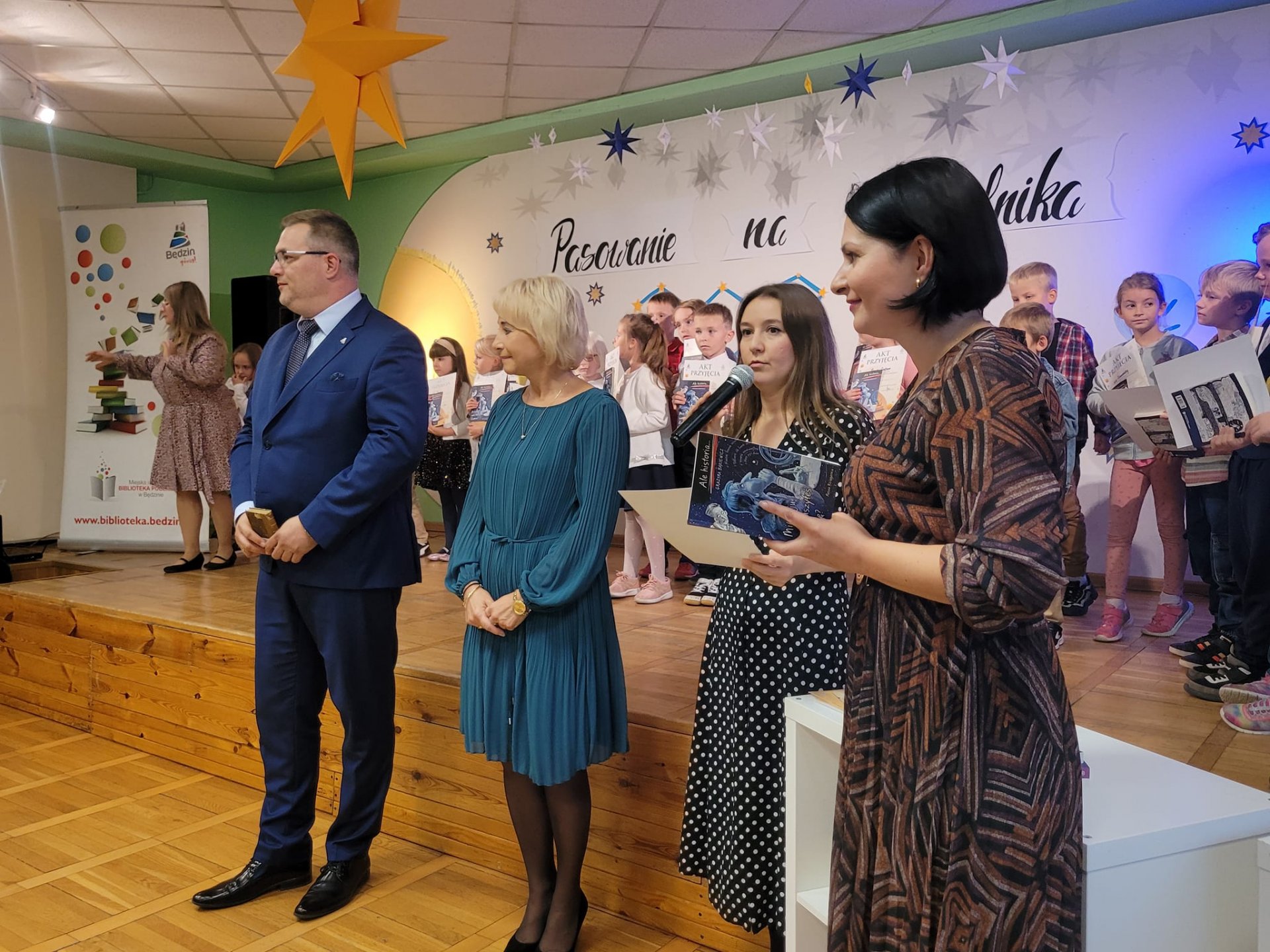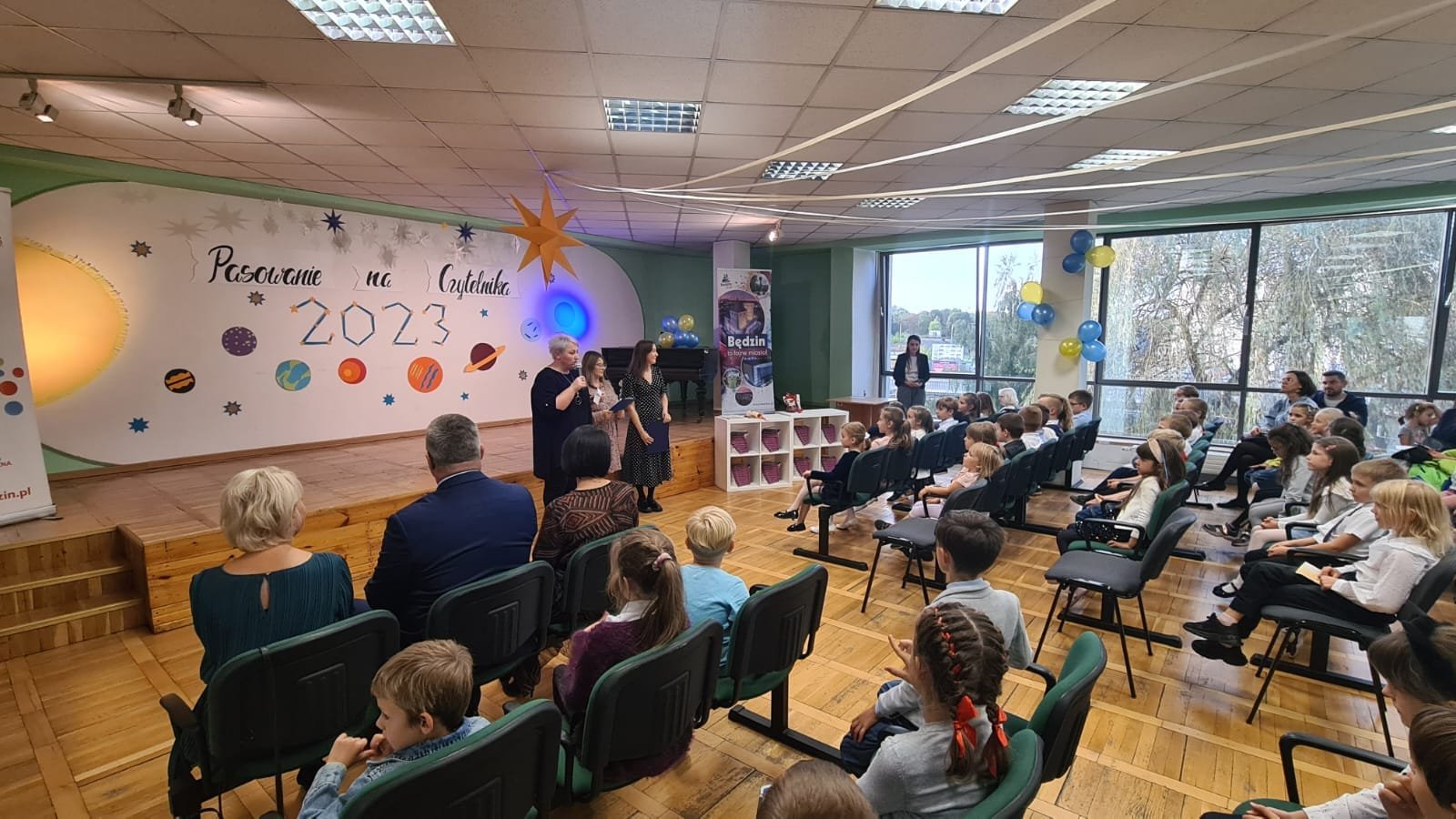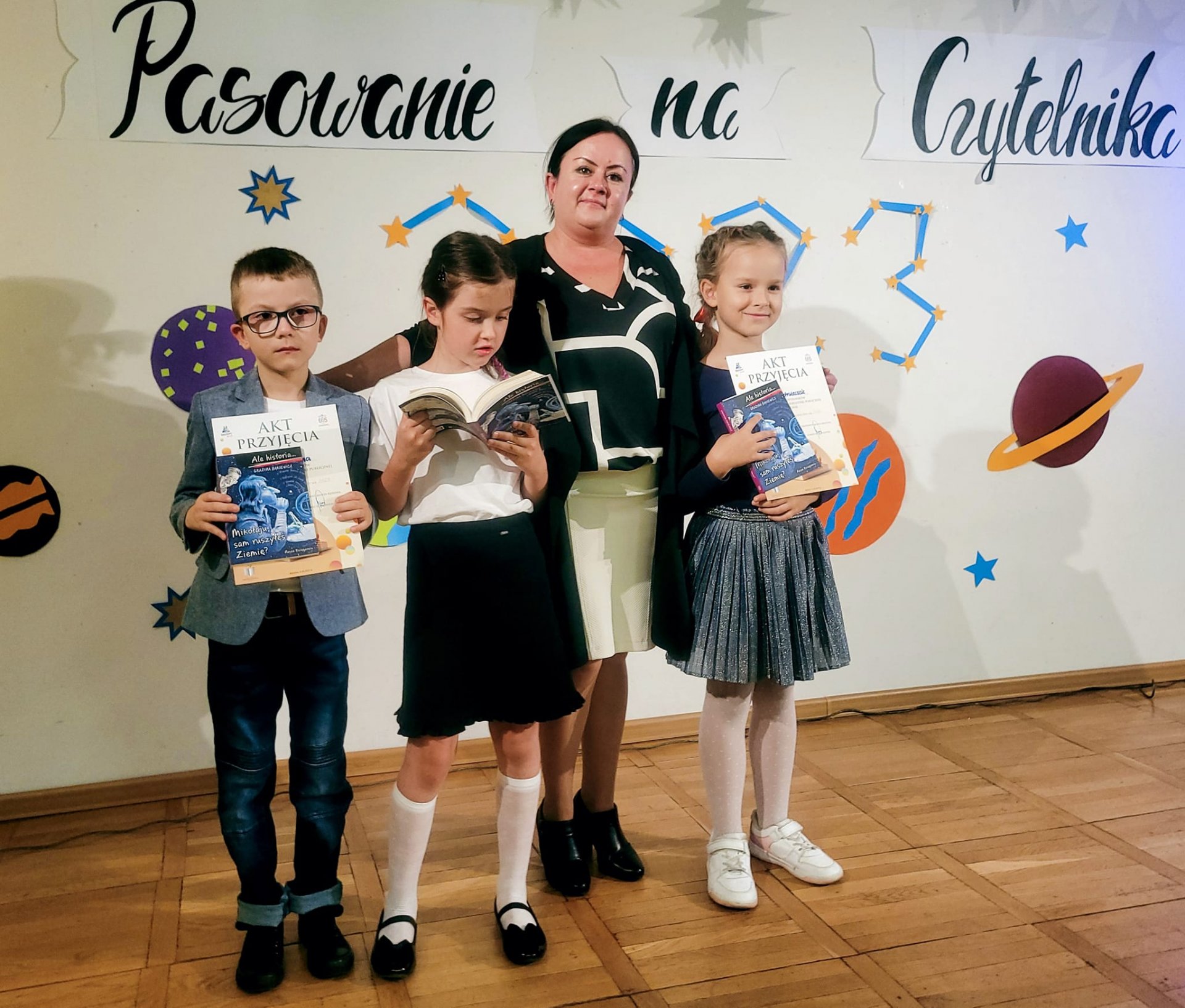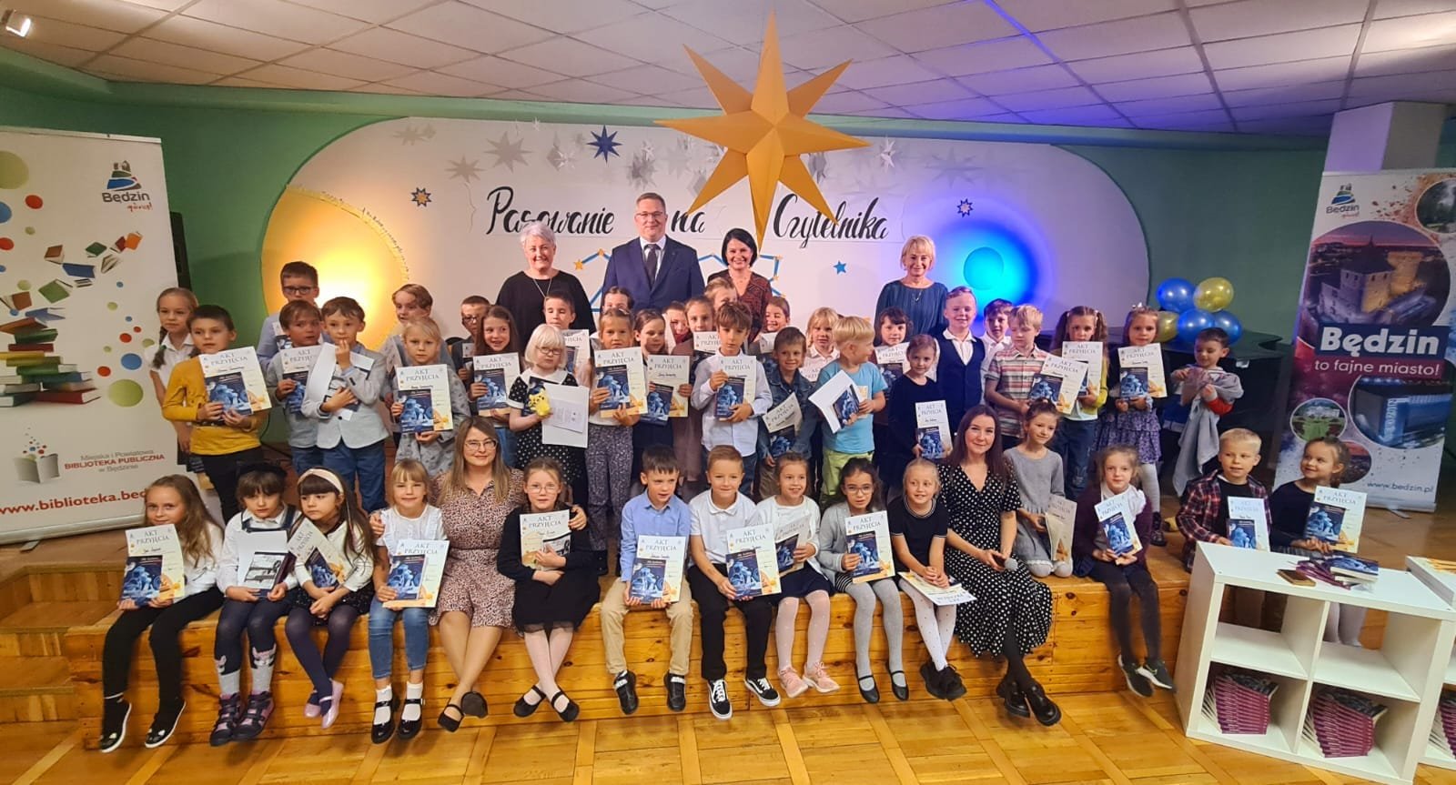 Na uroczystość pasowania dzieci w wieku 7-8 lat, które są czytelnikami biblioteki zostały zaproszone po raz trzydziesty siódmy. Wręczając im uroczysty Akt przyjęcia do grona Czytelników oraz książkowy upominek ufundowany przez Urząd Miejski w Będzinie podziękowaliśmy im za obecność w życiu biblioteki. Tegoroczna edycja, organizowana w ramach 665-lecia nadania praw miejskich miastu Będzin oraz z okazji 550-tych urodzin Mikołaja Kopernika, posiadała kosmiczną oprawę. Międzygwiezdne dekoracje nawiązywały do wyjątkowego polskiego astronoma, a książka pt. „Mikołaju, sam ruszyłeś Ziemię?” Grażyny Bąkiewicz, jaką otrzymały pasowane dzieci, dotyczyła właśnie jego postaci.