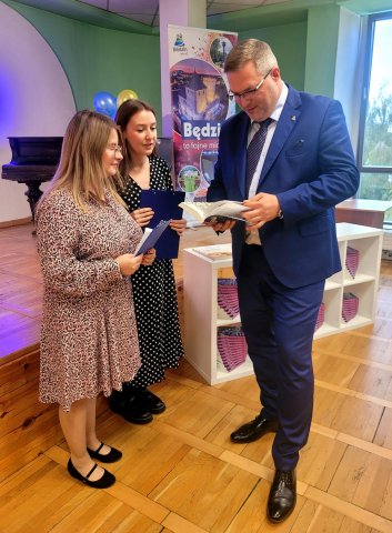 Tradycją będzińskiej biblioteki jest uroczystość przyjęcia w grono czytelników najmłodszych mieszkańców miasta. Uroczystość Pasowania na Czytelnika odbyła się wczoraj, z udziałem zaszczytnych gości, którzy przybyli na spotkanie z dziećmi. Był to sam Prezydent Miasta Będzina Pan Łukasz Komoniewski wraz z II Wiceprezydentem, Panią Anną Drzewiecką.