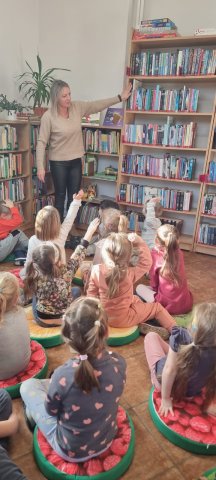 Maluchy z wielkim zainteresowaniem słuchały informacji jak należy zachować się w bibliotece i co trzeba zrobić, żeby zostać jej czytelnikiem. Dzieci zobaczyły, jak wygląda karta czytelnika oraz poznały zasady wypożyczania książek. Dowiedziały się także, jak należy dbać o książki i wysłuchały na ten temat wierszy. Spotkanie było wspaniała okazją do zaprezentowania przedszkolakom księgozbioru, który gromadzony jest w bibliotece z myślą o najmłodszych czytelnikach.